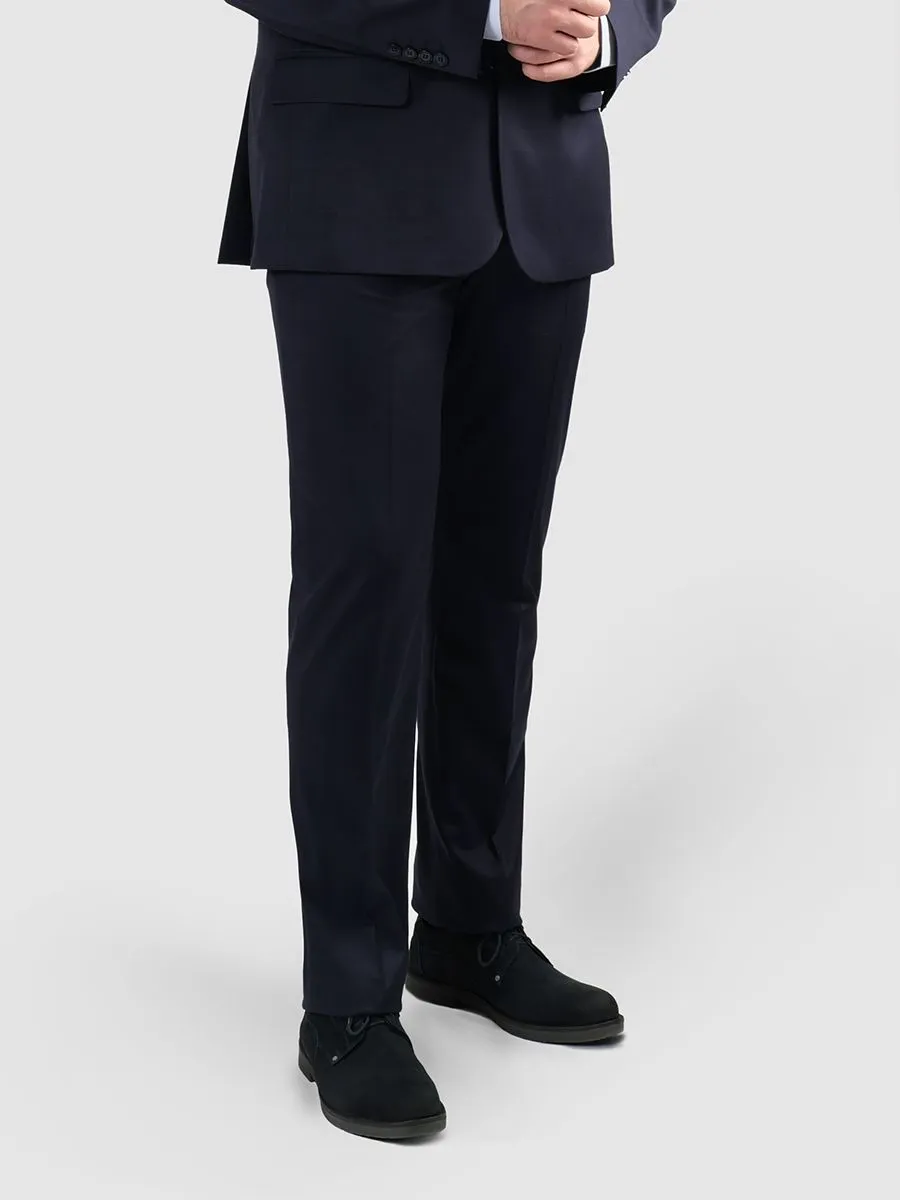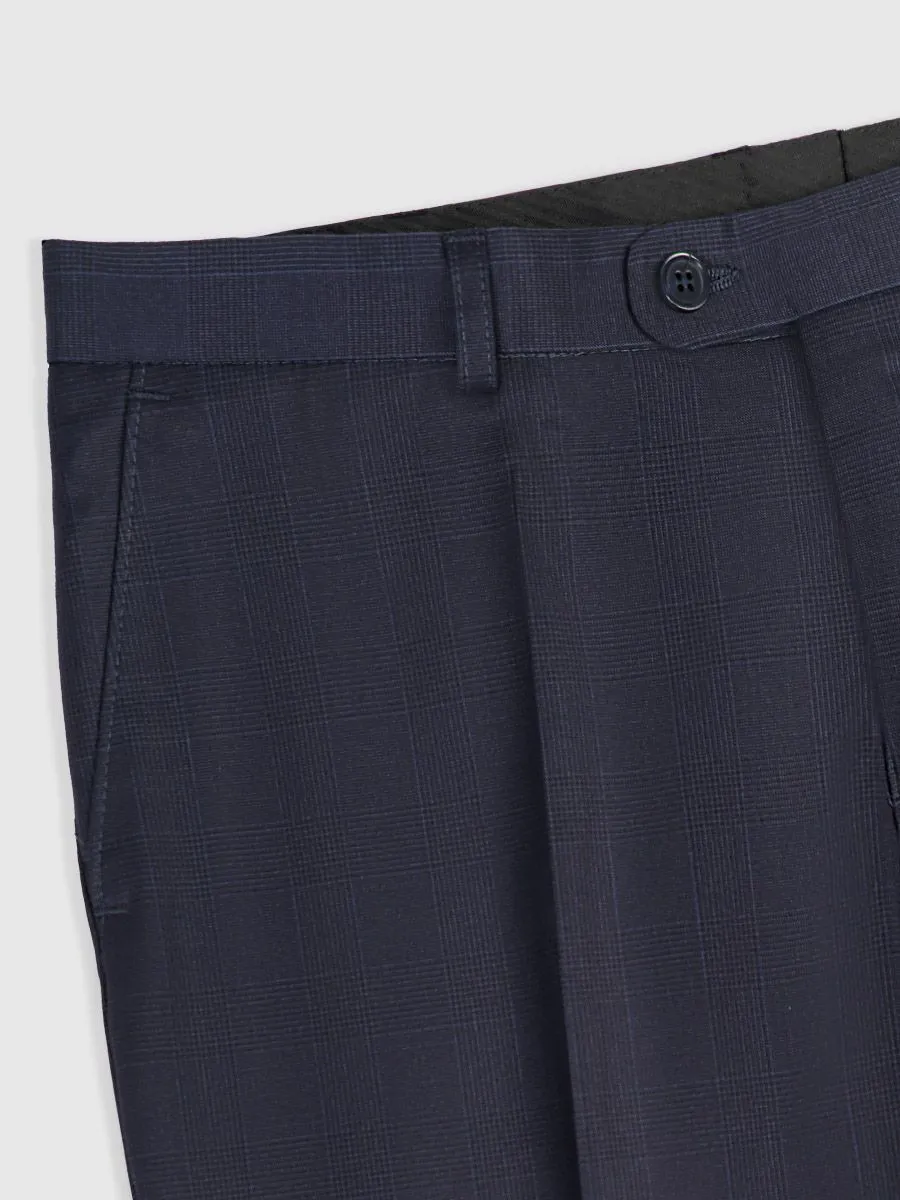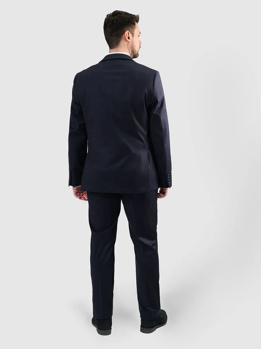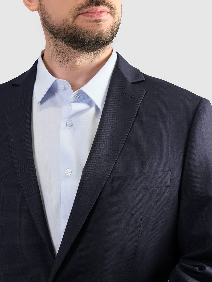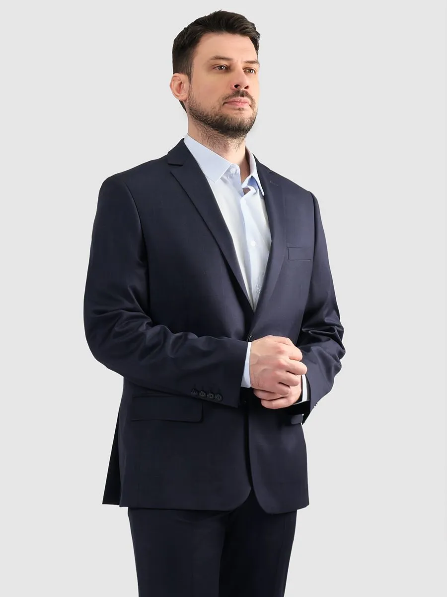 Мужской костюм из базовой коллекции. Темно-синий цвет костюма, универсальный и благородный, придает образу сдержанную респектабельность, а неконтрастная клетка добавляет изысканности и глубины, не перегружая визуальное восприятие. Такой рисунок позволяет костюму оставаться актуальным вне зависимости от быстро меняющихся трендов.Приталенный силуэт подчеркивает достоинства фигуры, создавая четкий и подтянутый образ. Это идеальный выбор для мужчин, стремящихся выглядеть безупречно в любой ситуации, будь то деловая встреча или светское мероприятие.