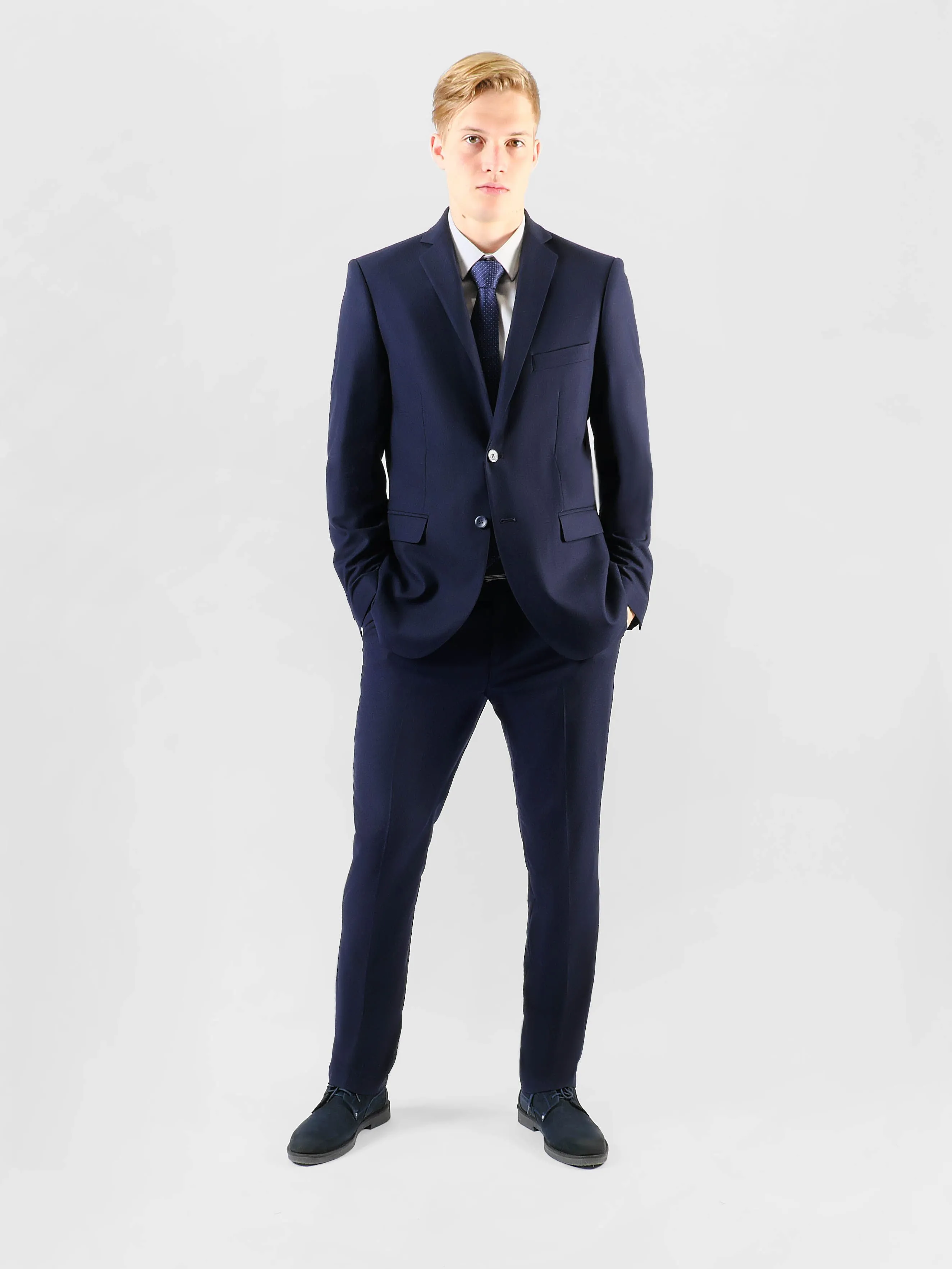 Классический силуэт костюма имеет свободный и расслабленный крой. Он не облегает тело, позволяя свободное движение и комфорт. Пиджак имеет более широкие плечи, что создает сбалансированный вид. Брюки обычно прямые, без излишней утяжки. Этот стиль подходит для различных случаев, включая деловые встречи и торжественные мероприятия.