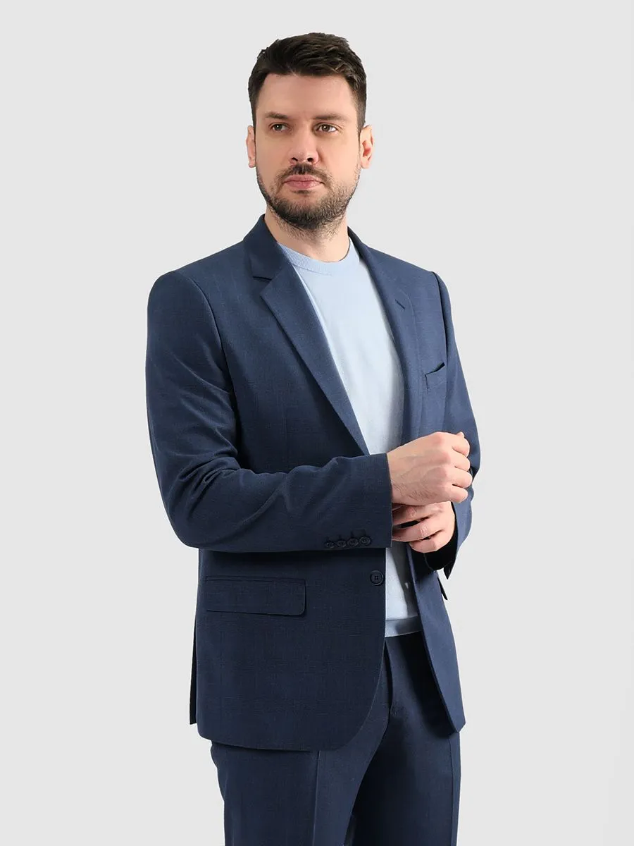Мужской костюм из базовой коллекции в синем цвете представляет собой воплощение сдержанной элегантности и современного стиля. Полуприлегающий силуэт искусно подчеркивает достоинства фигуры, создавая безупречный и утонченный образ. Ткань костюма отличается высоким качеством и приятной текстурой. Благородный синий оттенок идеально подходит для деловых встреч, торжественных мероприятий и повседневной носки, легко сочетаясь с различными рубашками, галстуками и аксессуарами.