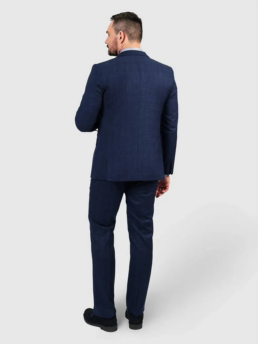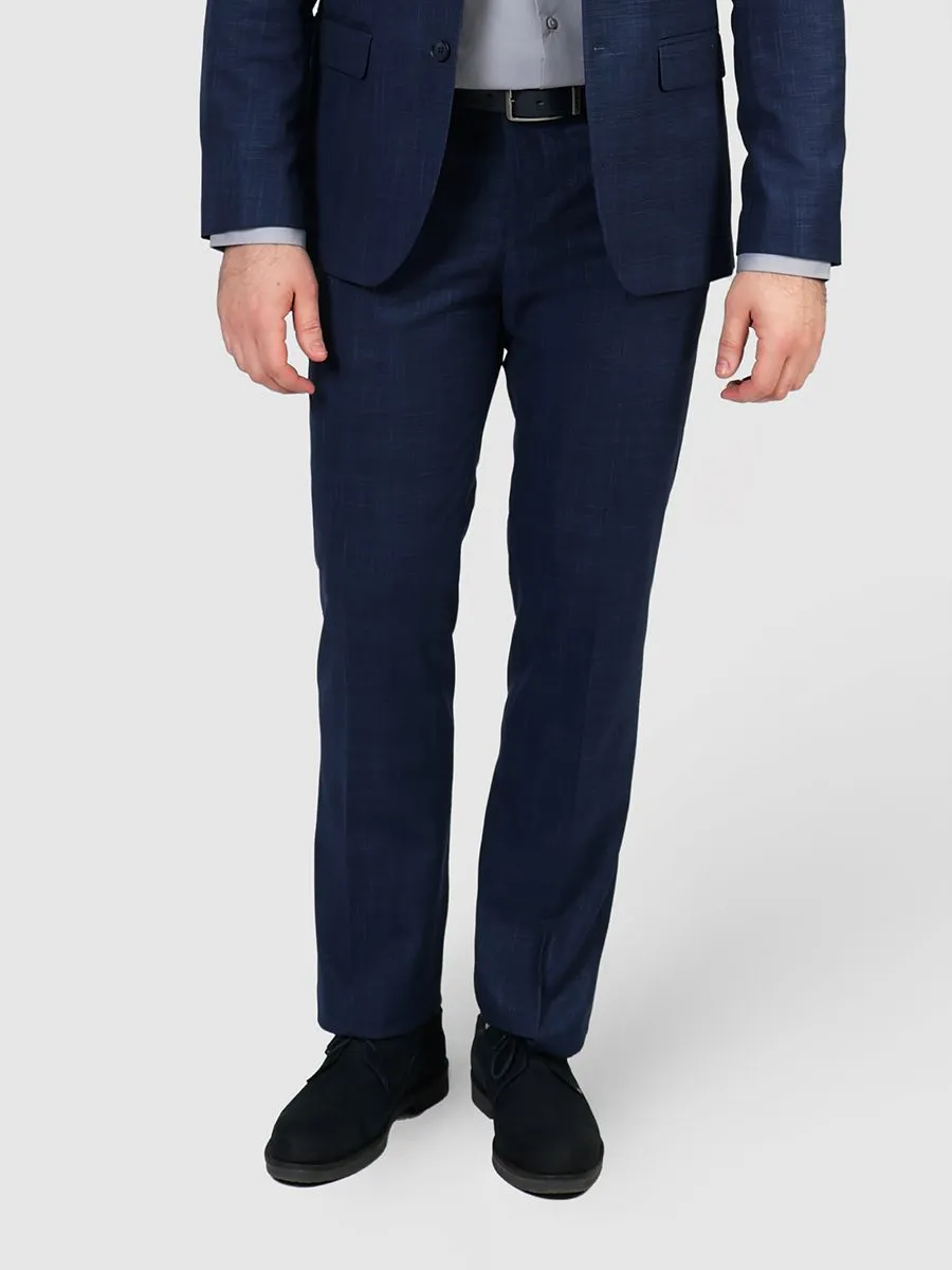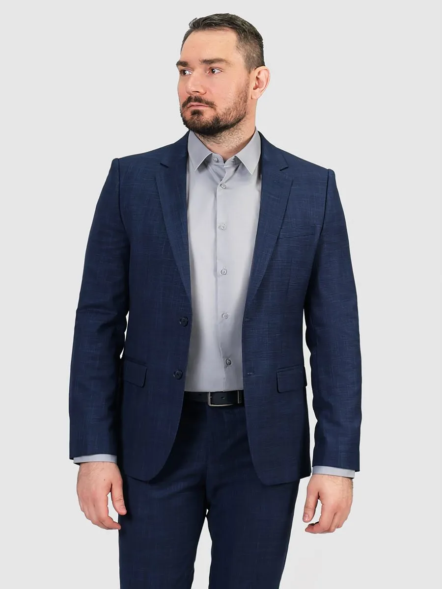 Мужской костюм из базовой коллекции в темно-синем цвете – это воплощение сдержанной элегантности и практичности. Неконтрастная клетка добавляет текстуры и глубины, не перегружая образ и делая его универсальным выбором для различных ситуаций. Полуприлегающий силуэт подчеркивает достоинства фигуры, обеспечивая комфорт и свободу движений, что особенно важно в динамичной городской среде.Такой костюм идеально подойдет для деловых встреч, офисной работы или торжественных мероприятий. Он легко комбинируется с различными рубашками, галстуками и обувью, позволяя создавать разнообразные образы в рамках делового стиля. Дополнить костюм можно кожаным ремнем, элегантными часами и лаконичной обувью, например, оксфордами или дерби.