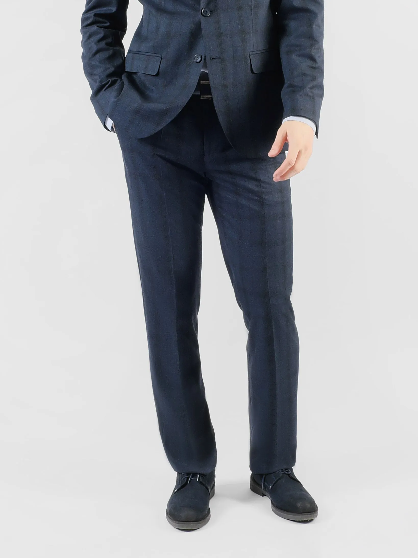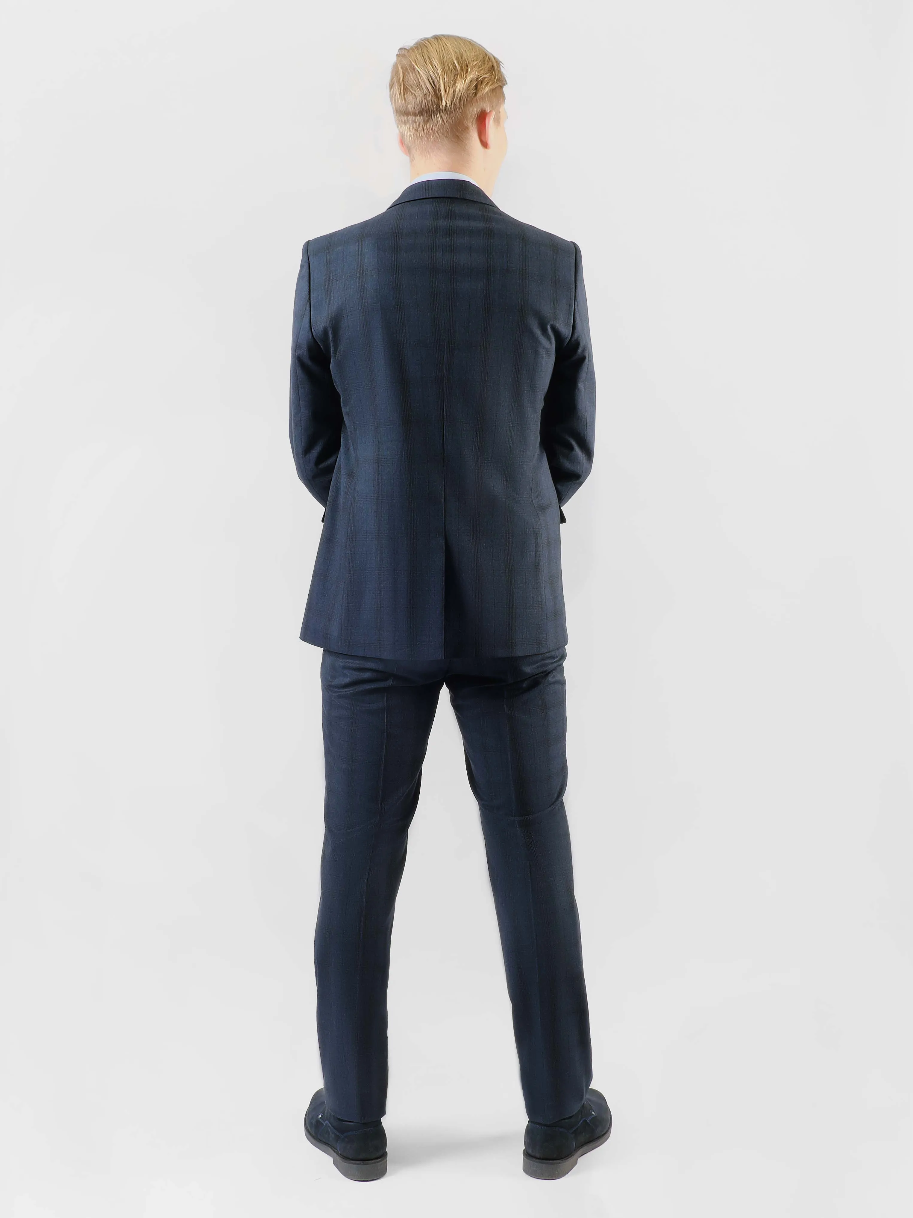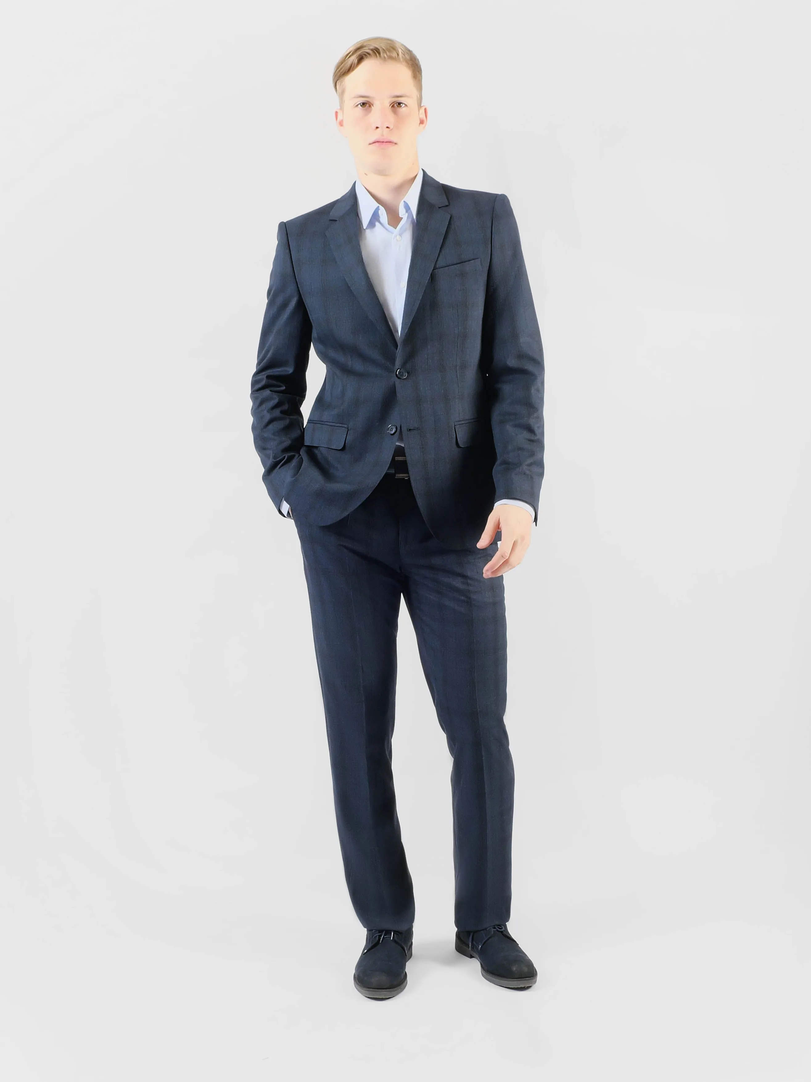 Мужской классический костюм полуприлегающего кроя. Этот костюм идеально подходит как для деловых встреч, так и для торжественных мероприятий. Благородный синий цвет придаёт образу уверенность и сдержанное достоинство, а неконтрастная клетка добавляет изысканности, оставаясь при этом стильной и ненавязчивой. Крой полуприлегающий, что обеспечивает комфорт и свободу движений, подчёркивая при этом стройный силуэт. В паре с белой или светло-голубой сорочкой, этот костюм создаёт законченный образ, говорящий о хорошем вкусе. Внимание к деталям, будь то аккуратно подогнанные лацканы или выверенные линии карманов, подчёркивает высочайшее качество исполнения, делая этот костюм идеальным приобретением для любого мужчины, стремящегося выглядеть безупречно.