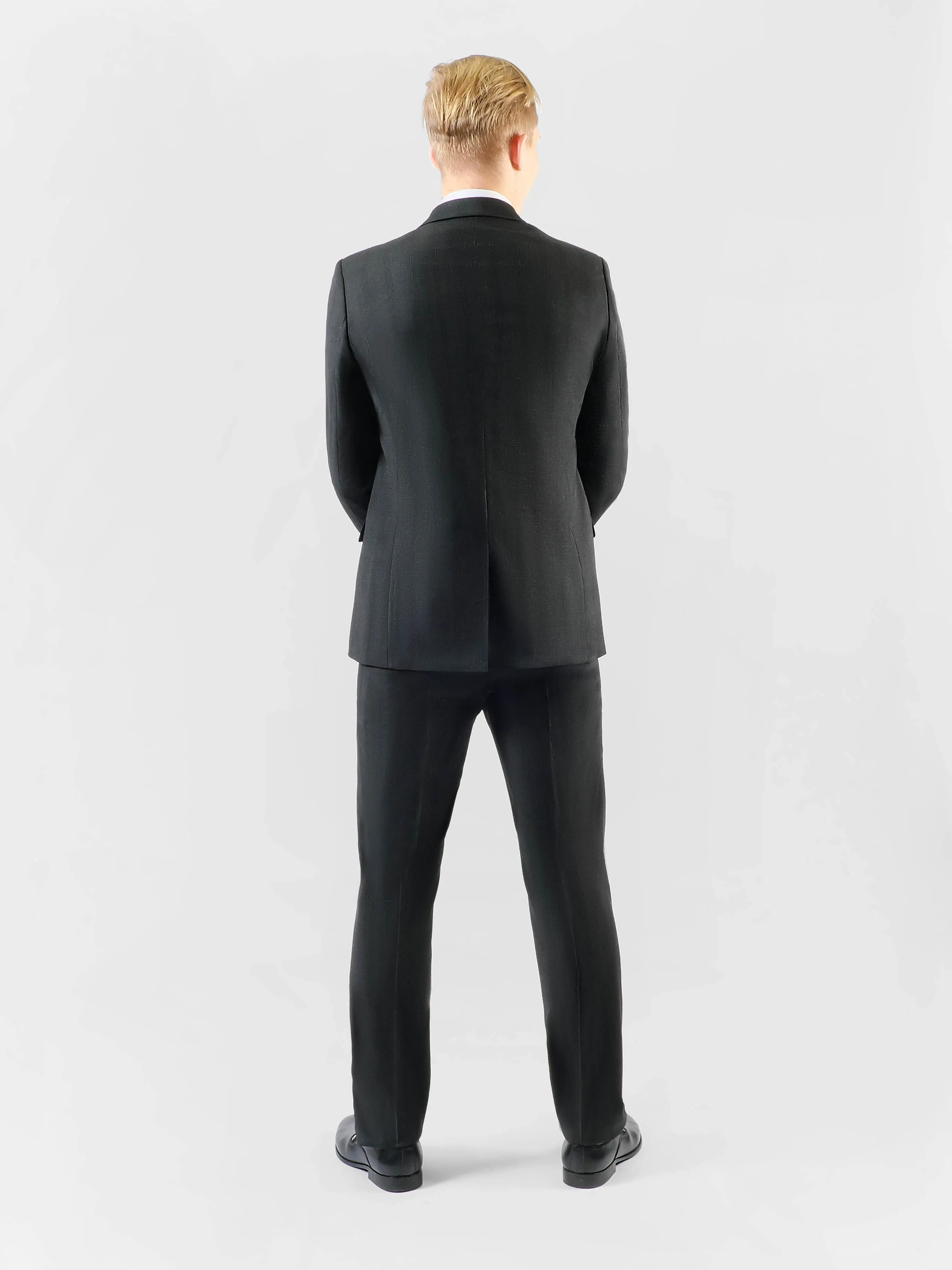 Полуприлегающий силуэт сочетает в себе элементы классического и приталенного стилей. Он слегка облегает фигуру, но не так сильно, как приталенный. Пиджак имеет более узкие линии по сравнению с классическим, подчеркивая форму тела, но не стягивая её. Брюки могут быть как прямыми, так и слегка зауженными, что создает более современный вид.