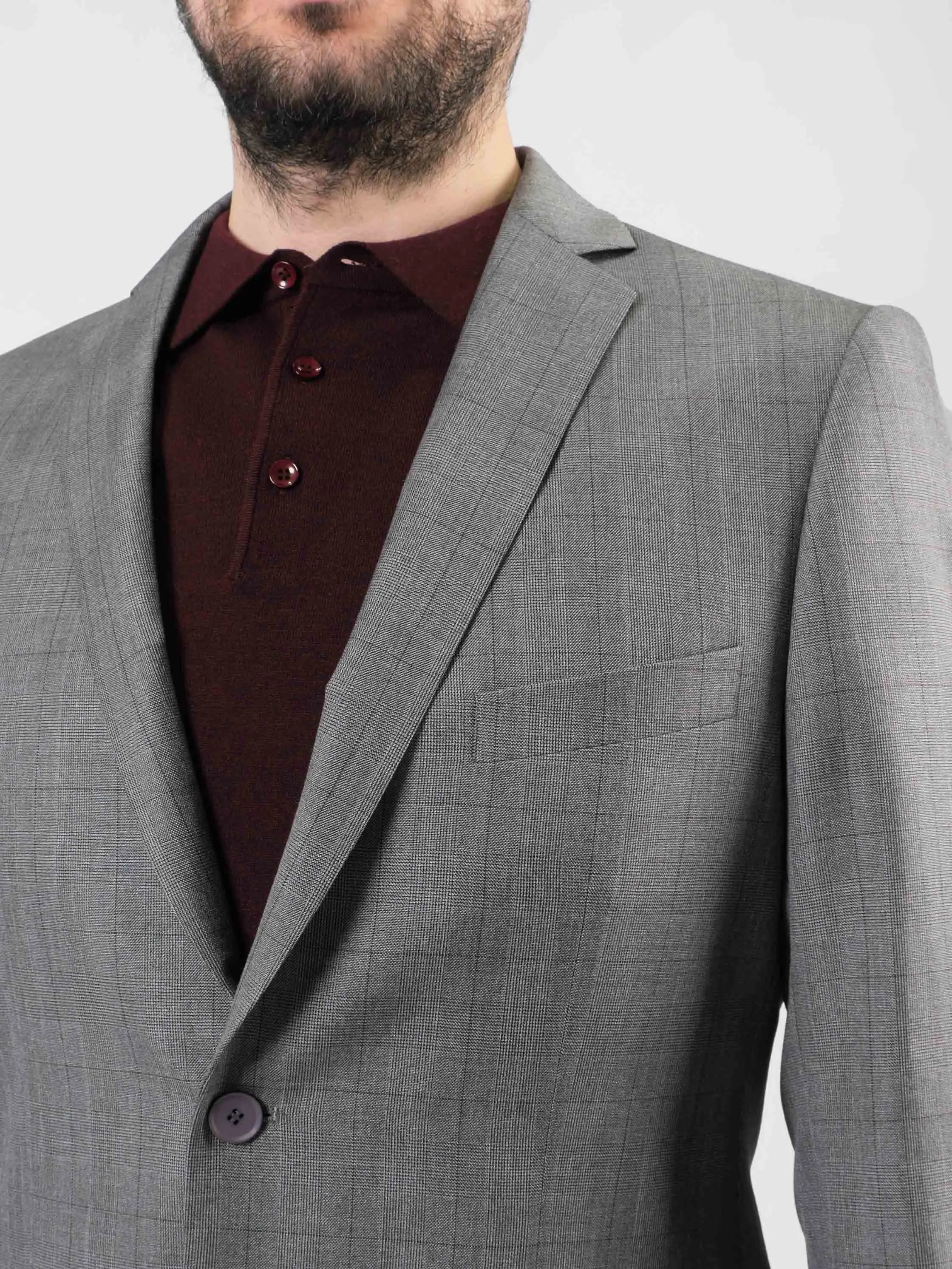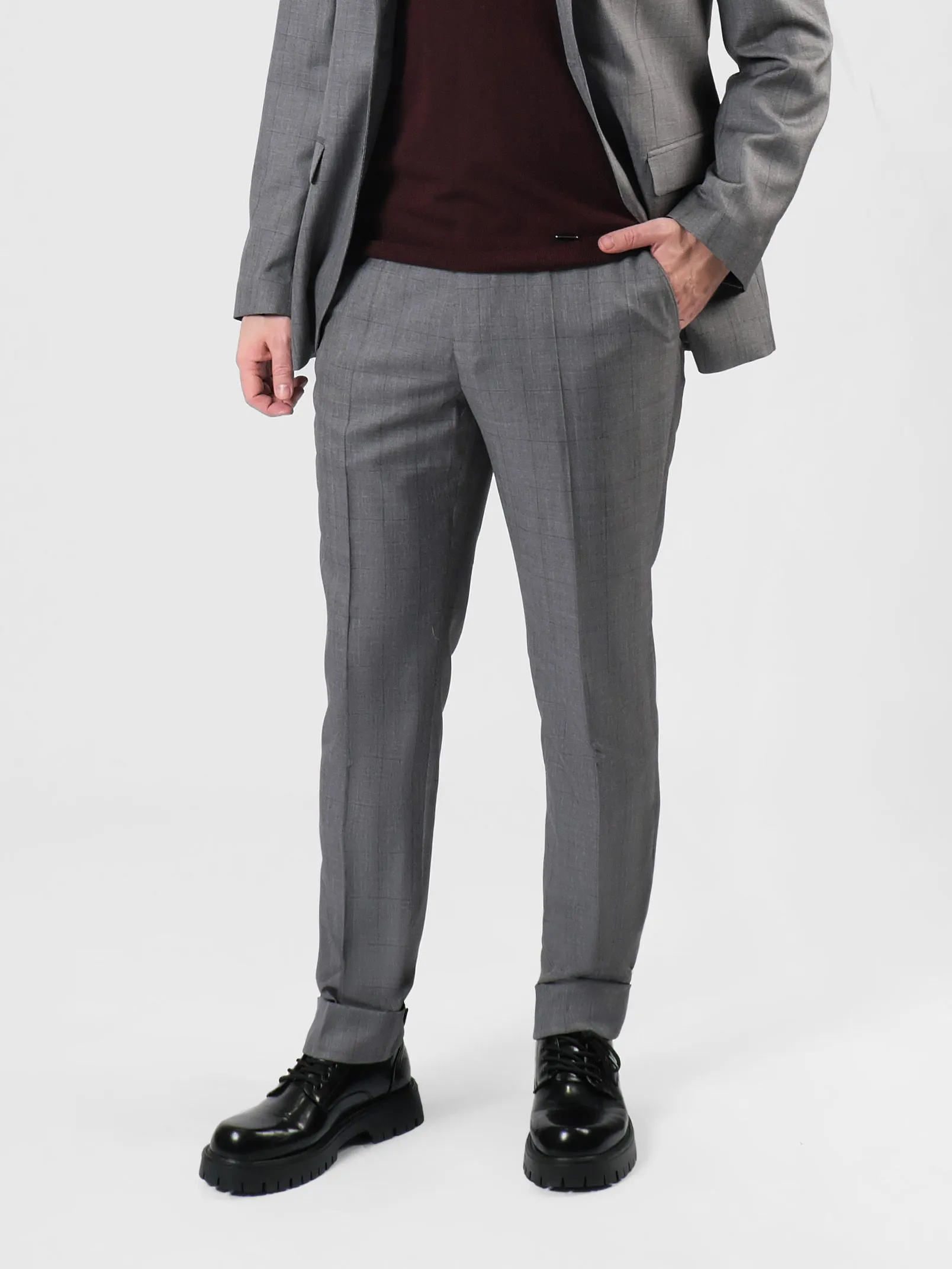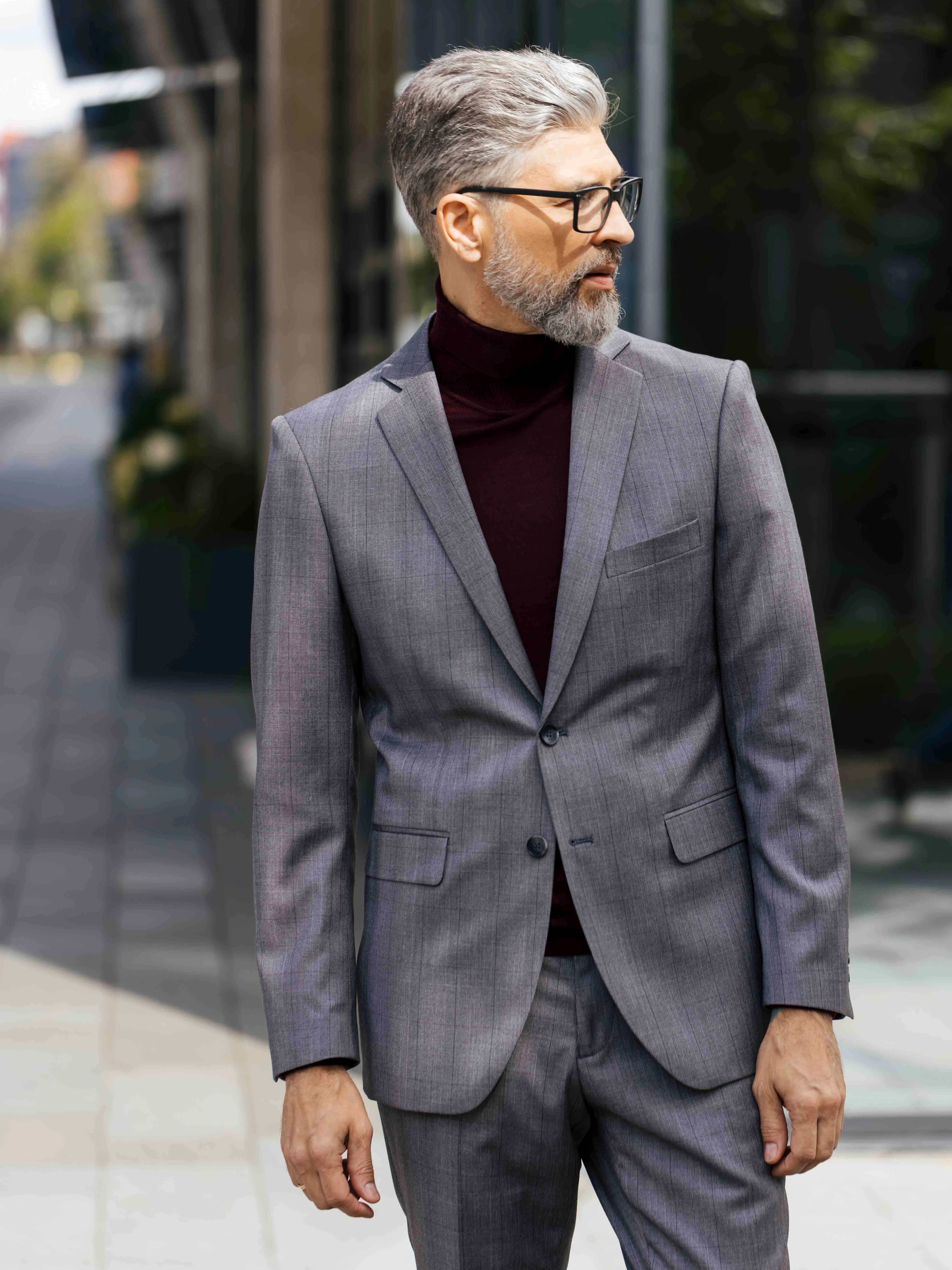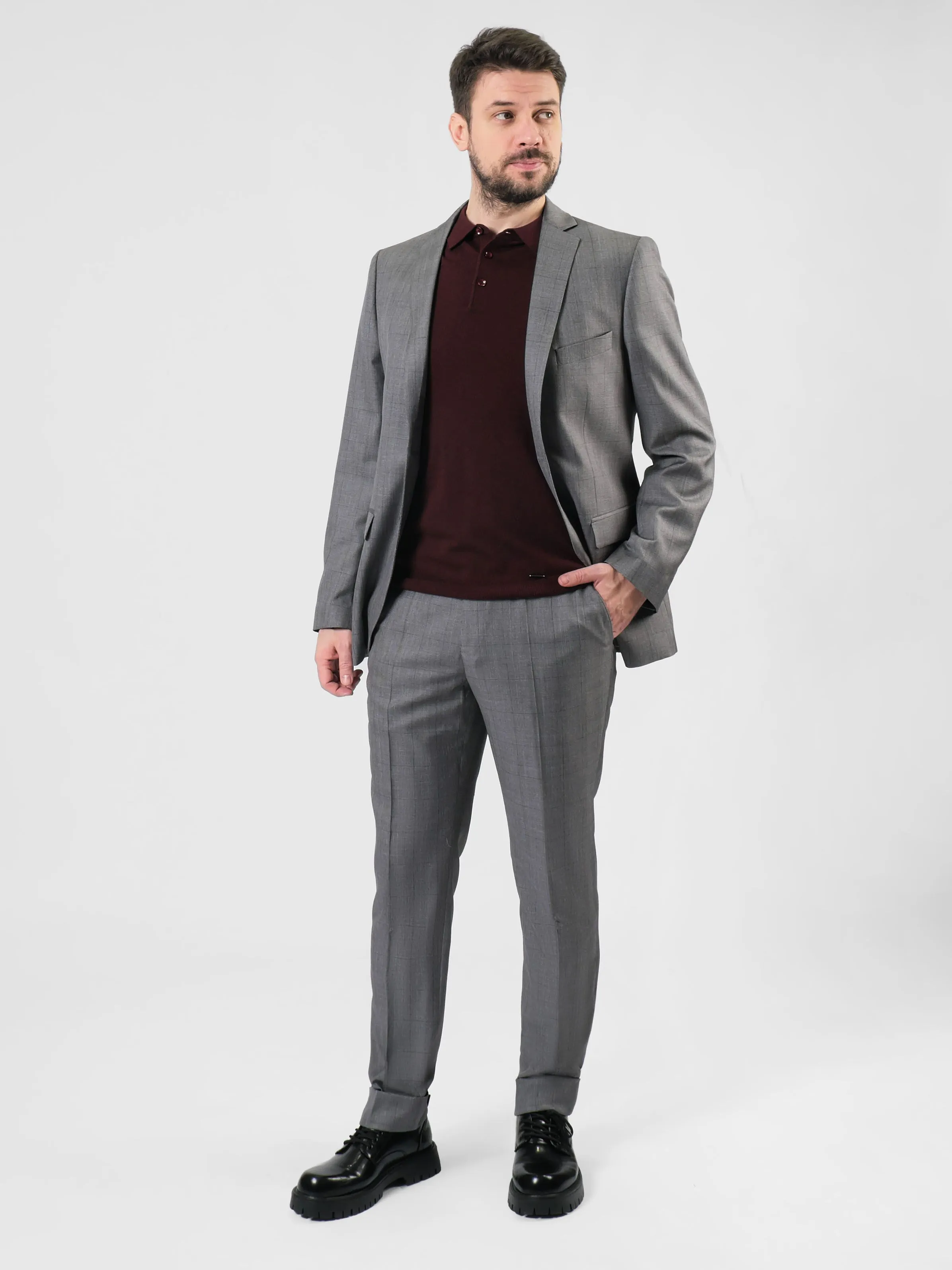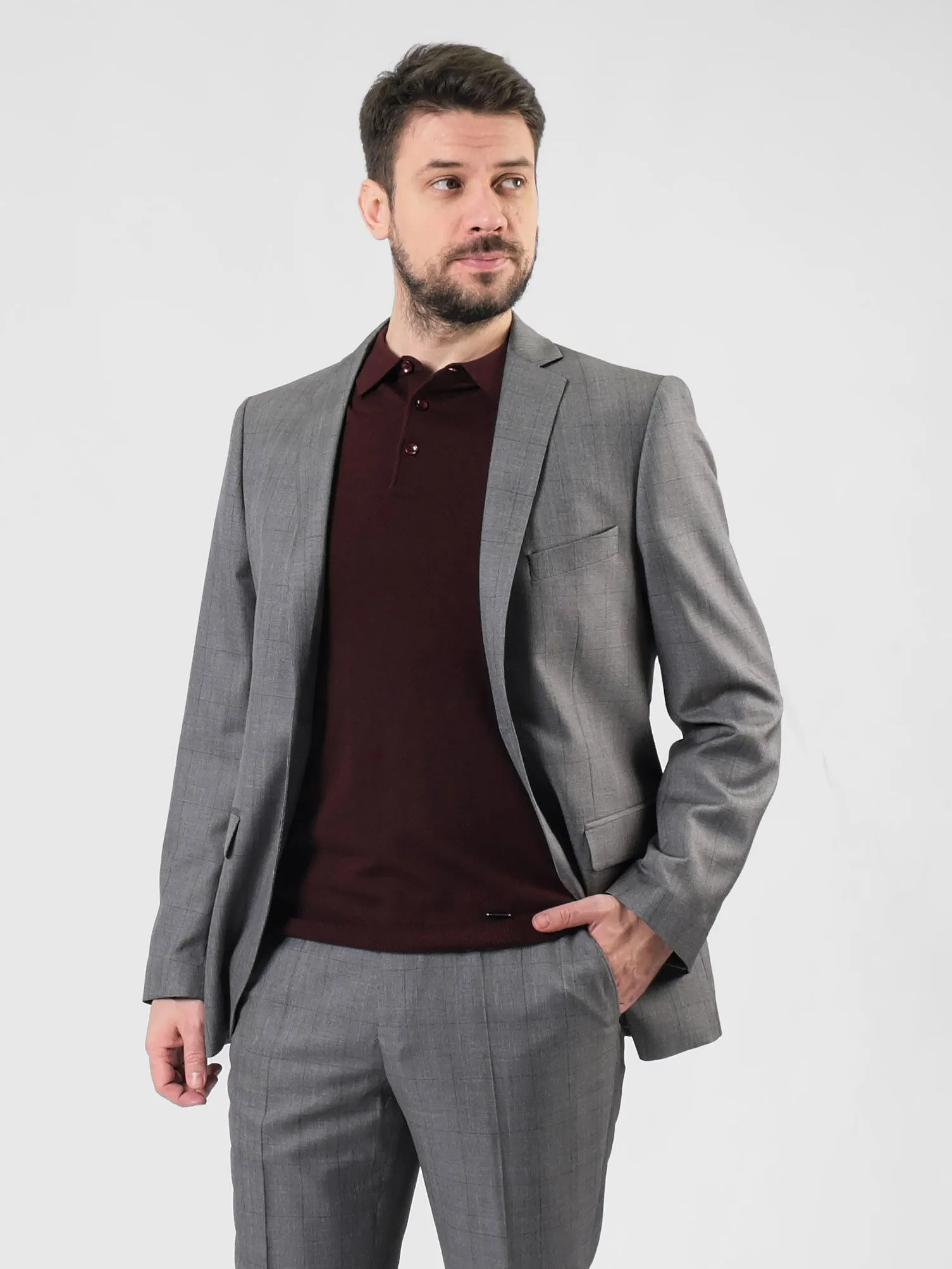 Светло-серый костюм в контрастную бордовую клетку, докажет вам, что серый цвет может быть не скучным. Оригинальное сочетание цветов ткани и клетки «Принц Уэльский» позволит создать исключительно элегантный образ. А модный штрих образу добавят брюкис манжетами.