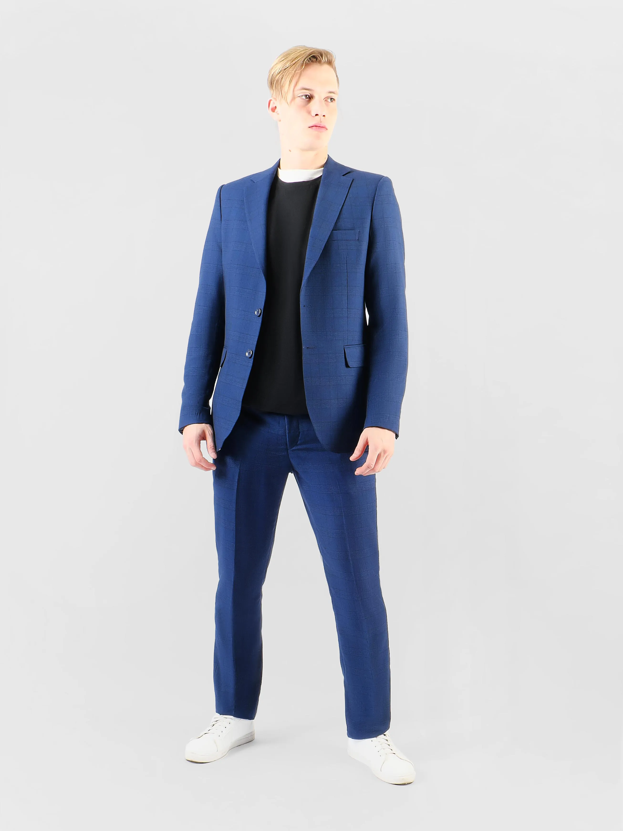 Синий мужской костюм из ткани с рисунком неконтрастная клетка идеально подходит для тех, кто ценит стиль и комфорт. Костюм сочетает в себе современные тенденции и классические элементы гардероба. Модель пиджака современная, с облегченным плечом, что обеспечивает свободу движений и комфорт в носке, сохраняя при этом изысканную эстетику образа. Брюки со стрелками подчёркивают элегантность и безупречный вкус владельца костюма, создавая гармоничный и совершенный образ. Этот костюм станет идеальным выбором для важных деловых встреч, торжественных мероприятий, добавляя уверенности и шарма каждому мужчине.