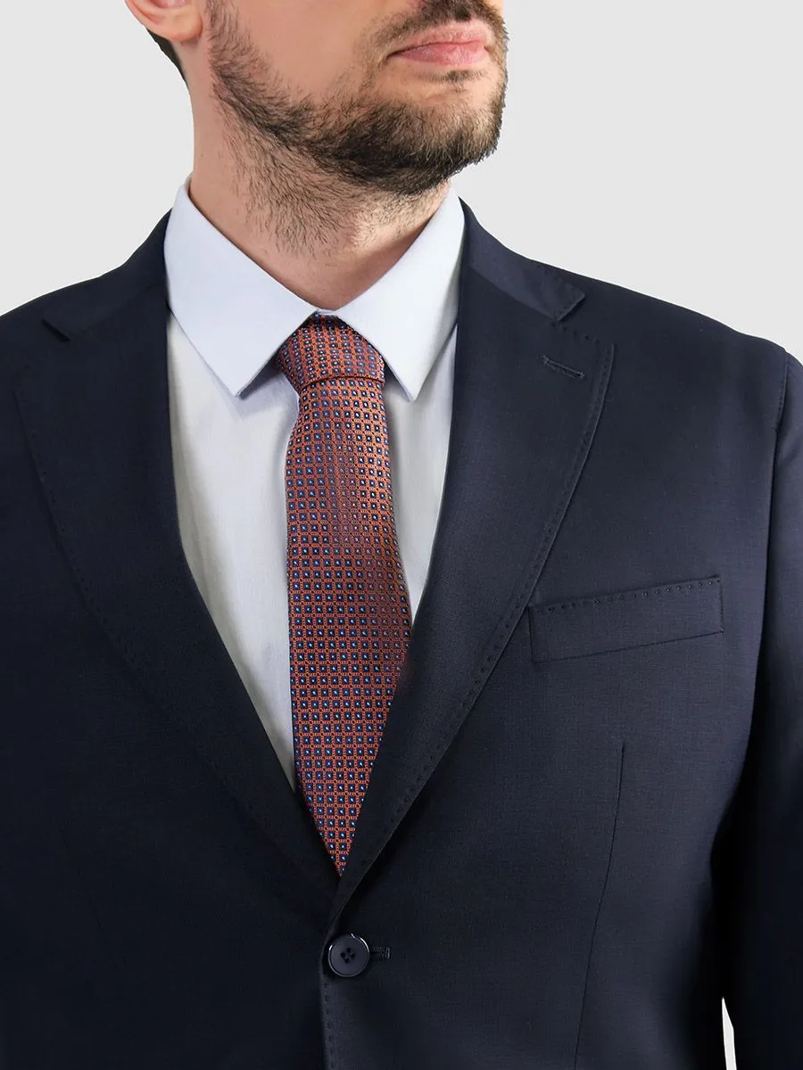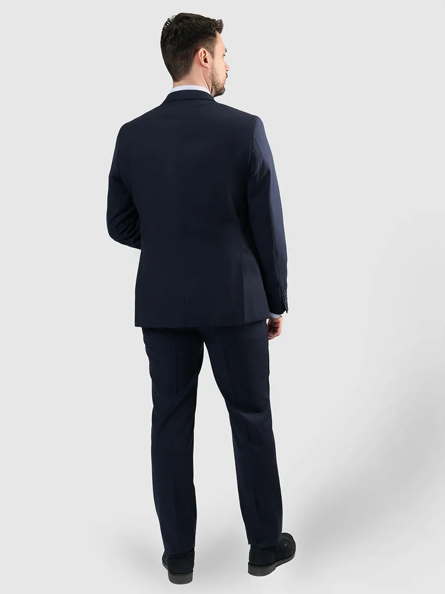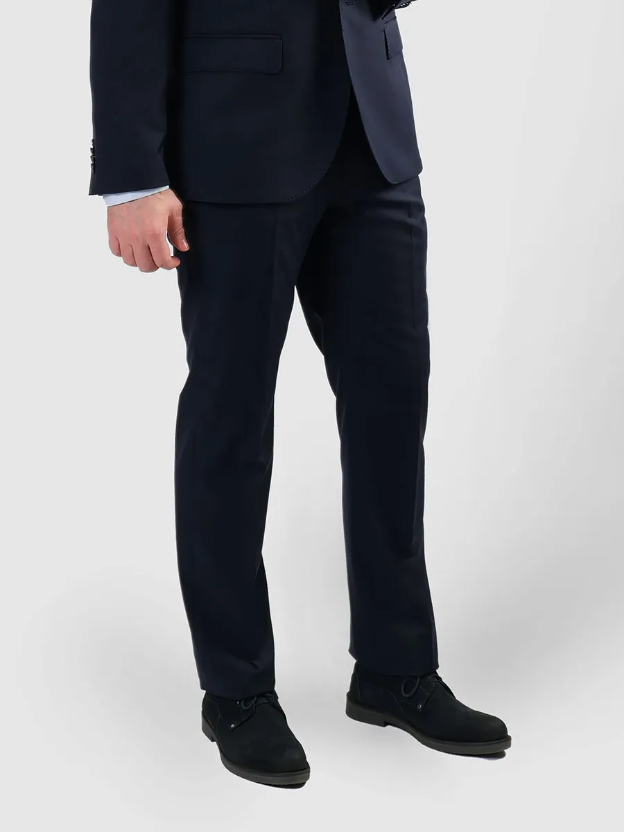 Этот костюм – воплощение элегантности и комфорта, идеально подходящее для современного мужчины, ценящего стиль и качество. Глубокий темно-синий оттенок придает образу солидности и универсальности, позволяя легко сочетать костюм с различными рубашками, галстуками и обувью. Внешняя вспушка ткани добавляет визуальной текстуры и глубины, выделяя костюм на фоне стандартных моделей.Содержание 50% шерсти в составе обеспечивает оптимальный баланс между теплом и воздухопроницаемостью. Шерсть прекрасно сохраняет тепло в прохладную погоду и позволяет коже дышать, предотвращая перегрев.