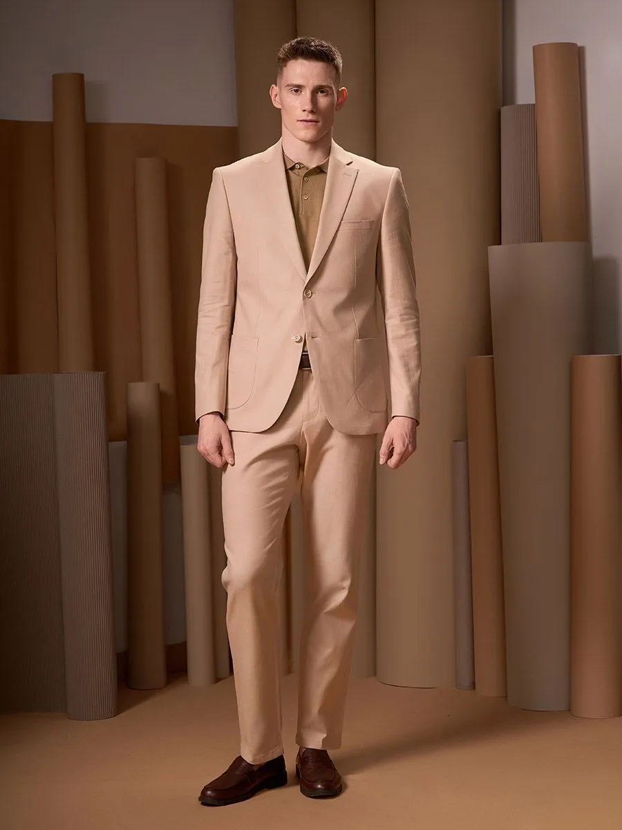 Полуприлегающий силуэт сочетает в себе элементы классического и приталенного стилей. Он слегка облегает фигуру, но не так сильно, как приталенный. Пиджак имеет более узкие линии по сравнению с классическим, подчеркивая форму тела, но не стягивая её. Брюки могут быть как прямыми, так и слегка зауженными, что создает более современный вид.