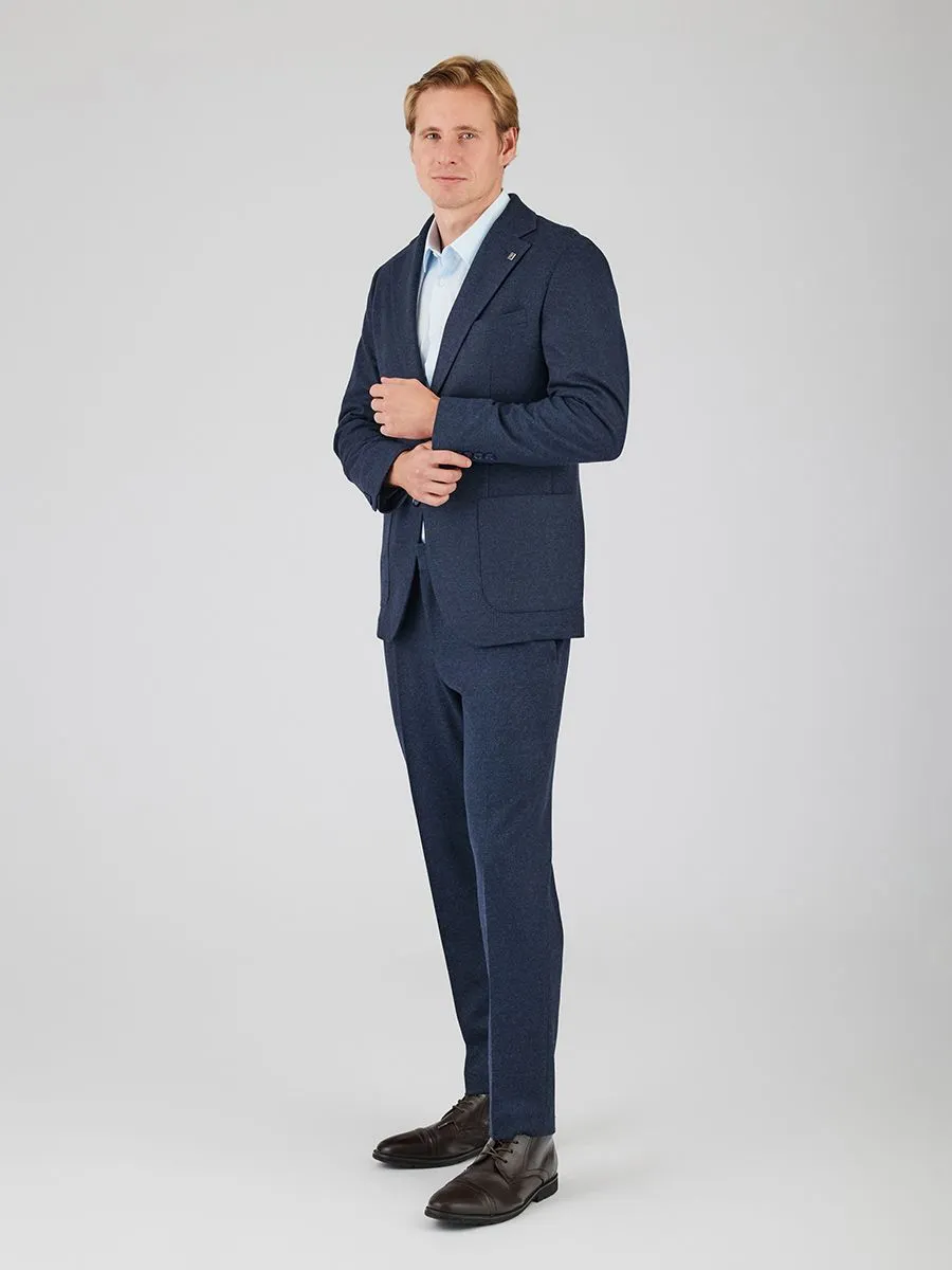 Мягкое трикотажное полотно, из которого он сшит, дарит невероятную свободу движений и идеальную посадку по фигуре. Пиджак на частичной подкладке обеспечивает превосходную воздухопроницаемость, позволяя коже дышать.Брюки в этом костюме – это настоящая находка для тех, кто ценит удобство. Эластичная резинка на талии создает ощущение непринужденности, а заниженная слонка добавляет образу расслабленности и современности. Застежка на крючок и шнурок на люверсах, который при желании можно убрать внутрь, обеспечивает надежную фиксацию. Широкий пояс (4,5 см), резинка, расположенная только сзади, и шесть шлевок для ремня гарантируют идеальную посадку на талии. Этот костюм станет вашим верным спутником как в повседневной жизни, так и на важных мероприятиях, подчеркивая ваш безупречный вкус и чувство стиля.