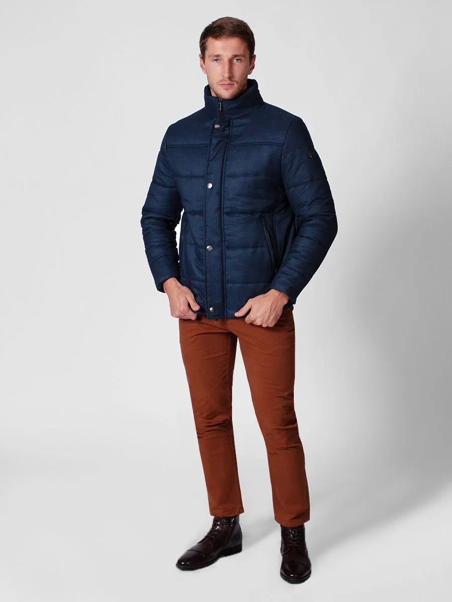 Мужская куртка Peplos синего цвета выполнена в полуспортивном стиле и подойдет активным мужчинам, находящимся в постоянном движении. Она предназначена для зимнего сезона и идеально тем, кто часто находится за рулем. В ней будет комфортно сидеть благодаря укороченному силуэту. Модель куртки украшена стегаными горизонтальными линиям, что актуально в этом сезоне. В составе утеплителя содержится 100% сустэнс. Основой состав – прочный и износостойкий полиэстер.