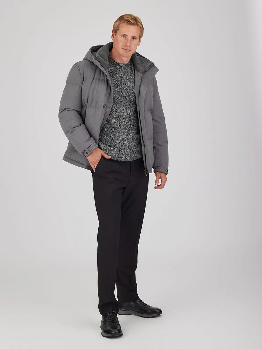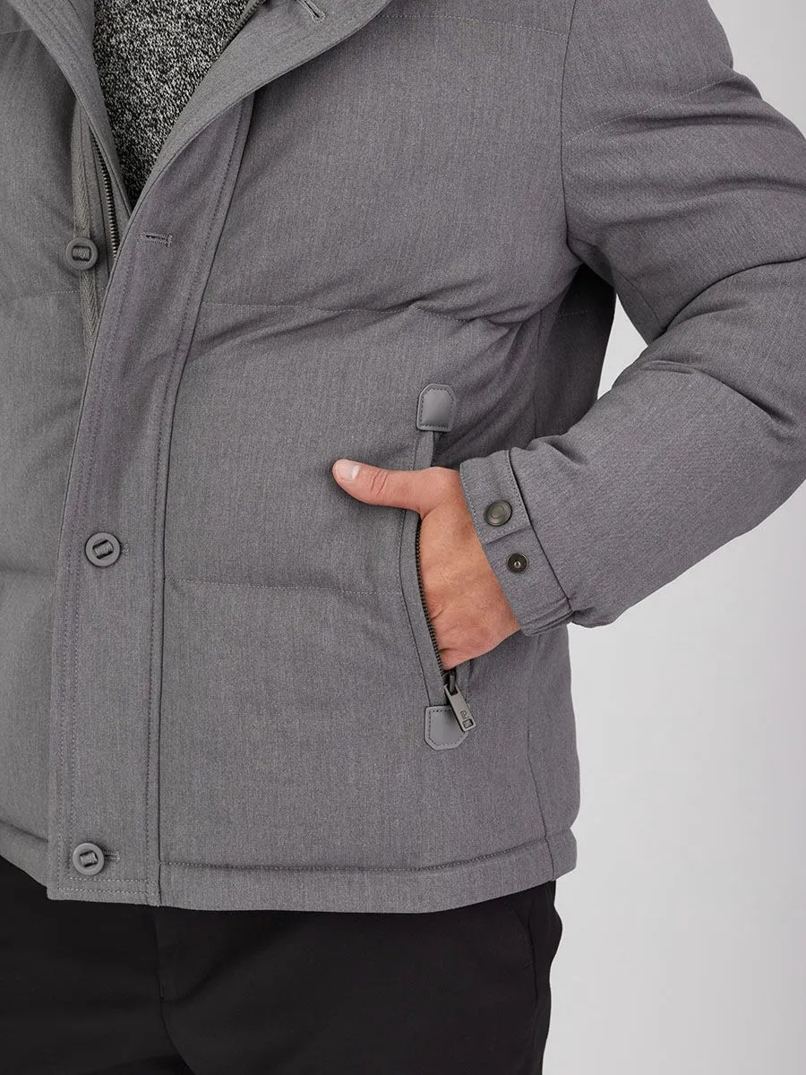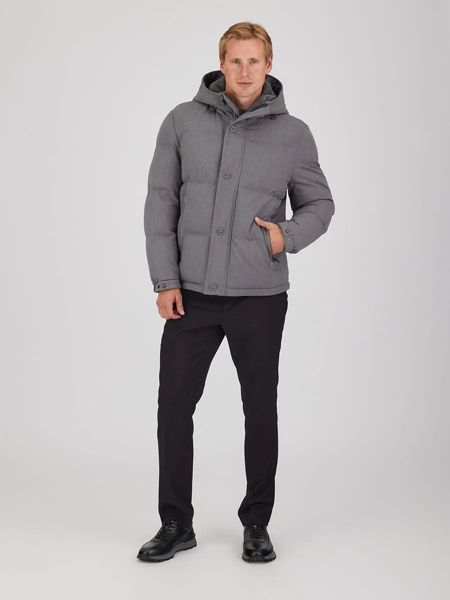 Мужская зимняя куртка укороченного силуэта, выполненная в элегантном сером цвете, станет незаменимым элементом гардероба в холодное время года. Стеганый дизайн придает ей современный и стильный вид. Надежная застежка на молнию, дополненная пуговицами в тон, обеспечивает максимальную защиту от ветра и холода. Капюшон с регулируемыми затяжками и воротник с эластичной резинкой гарантируют комфорт и тепло, а регулируемые манжеты позволяют настроить посадку под себя.