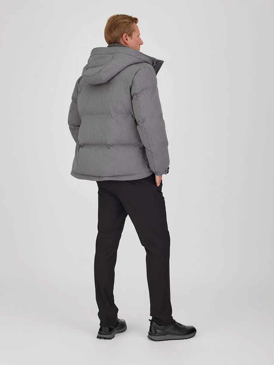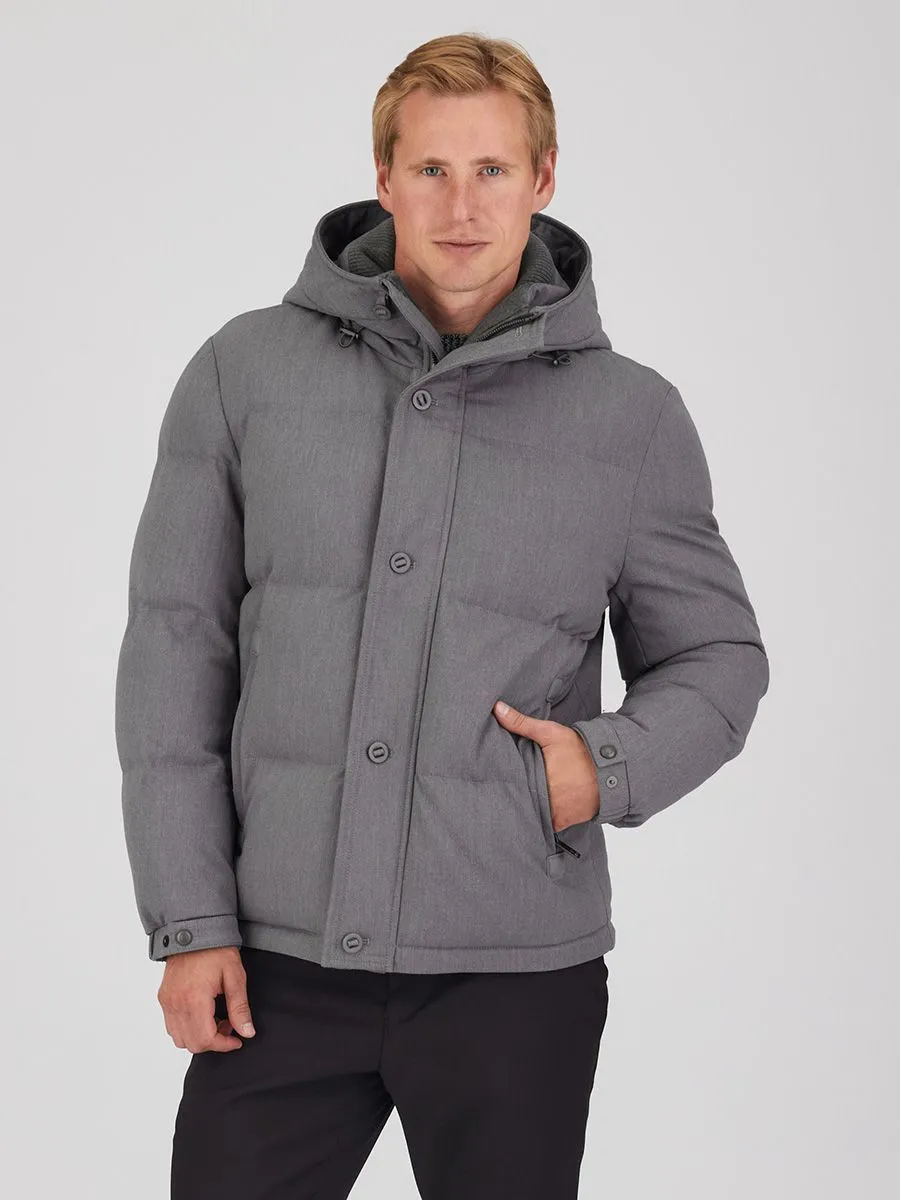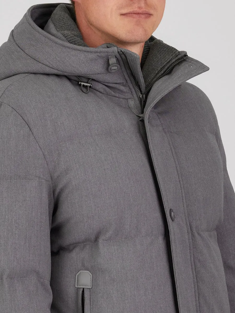 Мужская зимняя куртка укороченного силуэта, выполненная в элегантном сером цвете, станет незаменимым элементом гардероба в холодное время года. Стеганый дизайн придает ей современный и стильный вид. Надежная застежка на молнию, дополненная пуговицами в тон, обеспечивает максимальную защиту от ветра и холода. Капюшон с регулируемыми затяжками и воротник с эластичной резинкой гарантируют комфорт и тепло, а регулируемые манжеты позволяют настроить посадку под себя.