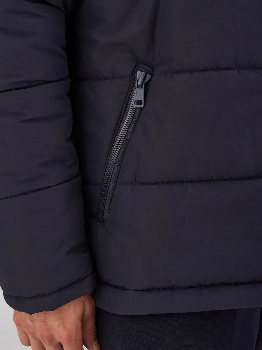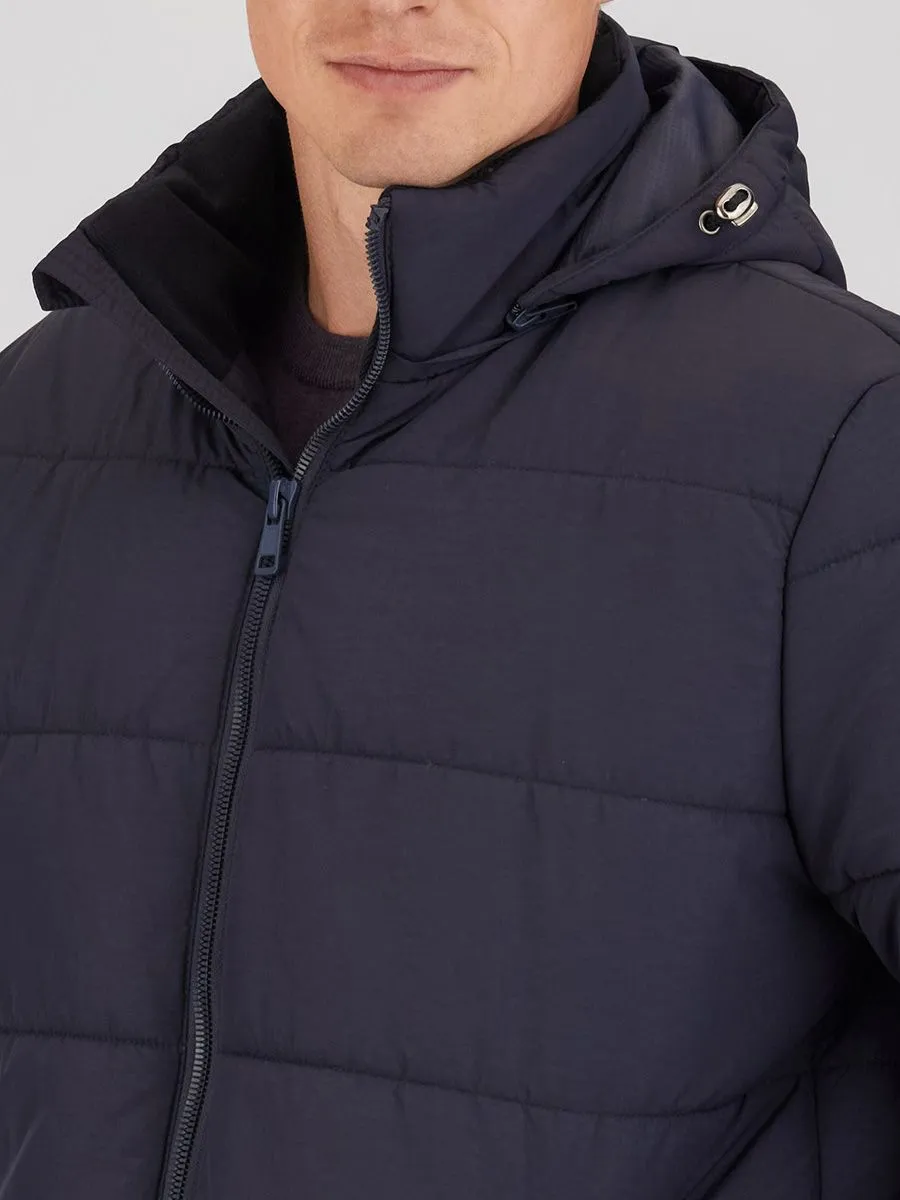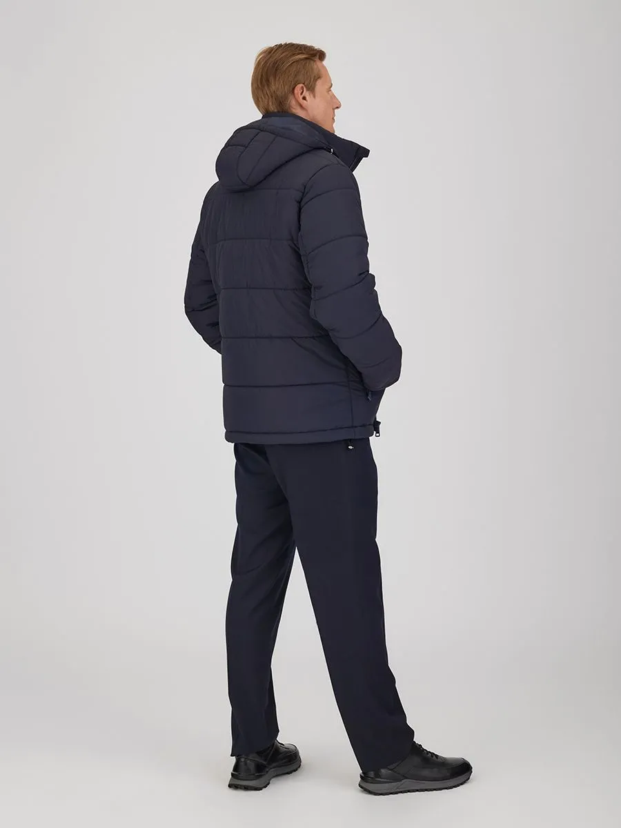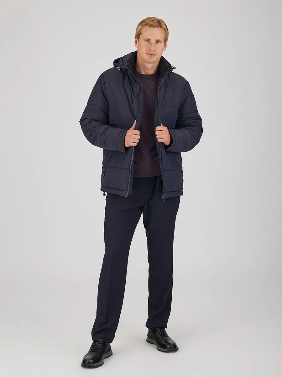 Эта куртка - стильное и практичное решение для холодной погоды. Укороченный силуэт подчеркивает современный образ, а надежная застежка-молния гарантирует комфорт и защиту от ветра. Капюшон обеспечивает дополнительное тепло и уют. Куртка выполнена в элегантном темно-синем цвете. Ткань верха из 100% нейлона обеспечивает прочность и долговечность изделия. Утеплитель "Текстон" с плотностью 200 гр/м² гарантирует оптимальную теплоизоляцию даже в самые морозные дни.