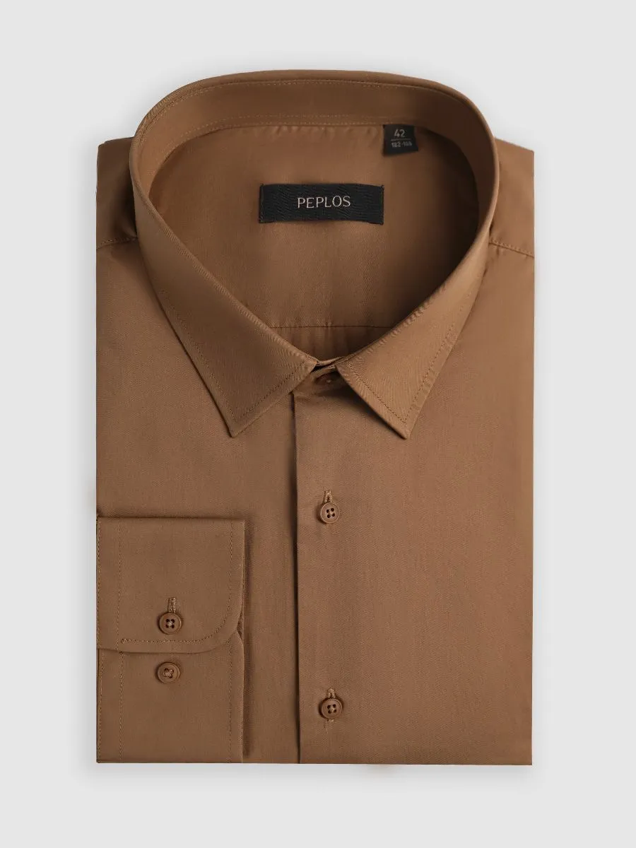 Изысканная мужская сорочка, выполненная в оттенке корицы, станет неотъемлемой частью гардероба современного мужчины. Однотонная гладкая фактура подчеркивает элегантность и безупречный вкус. Приталенный силуэт искусно подчеркивает достоинства фигуры, создавая стильный и уверенный образ. Изготовленная из 100% хлопка, эта сорочка гарантирует максимальный комфорт и приятные ощущения на коже в течение всего дня.