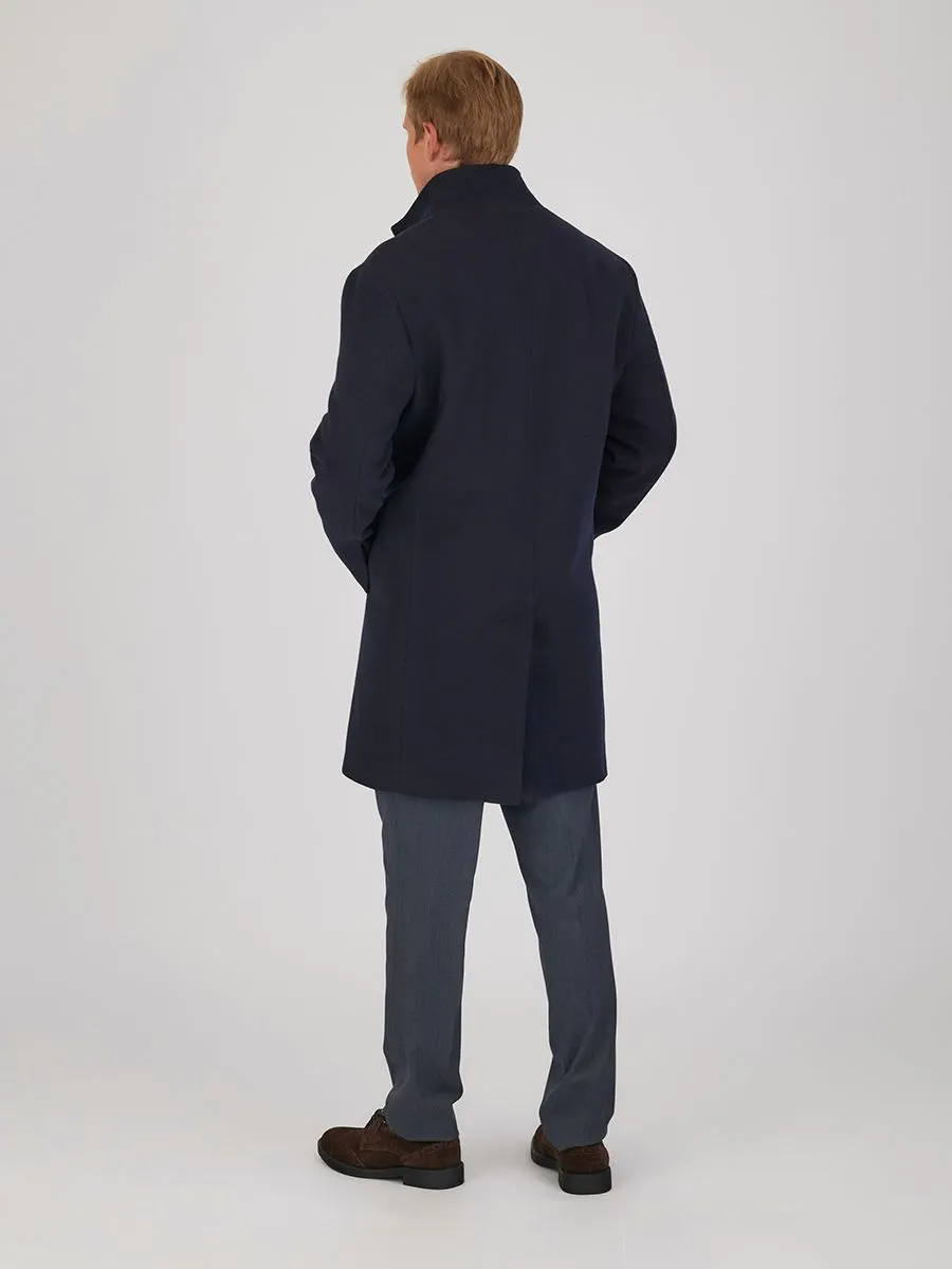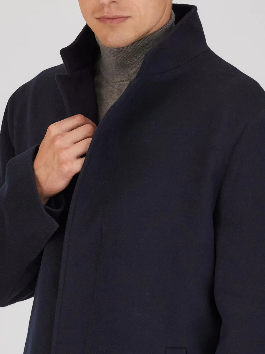 Элегантное пальто, созданное для комфорта и стиля. Утеплитель из холлофайбера гарантирует тепло в холодную погоду до -10 градусов. Новая утеплённая модель имеет супатную застёжку на пуговицах, создавая изысканный и минималистичный вид. Воротник-трансформер предлагает универсальность: его можно носить как отложной с лацканами или застегнуть в стойку для дополнительной защиты от ветра. Манжеты также снабжены супатной застёжкой на пуговицах, добавляя утонченные детали в общий дизайн.