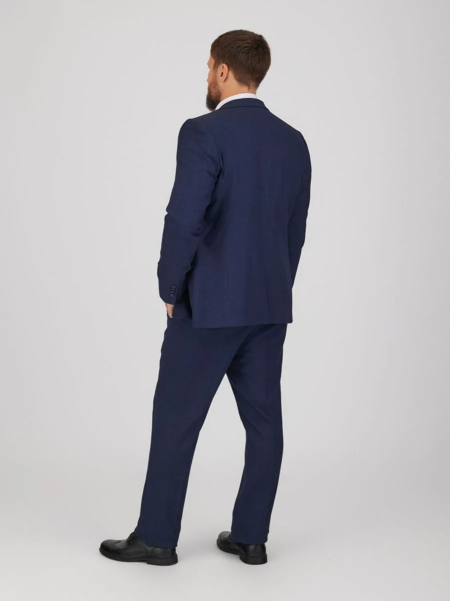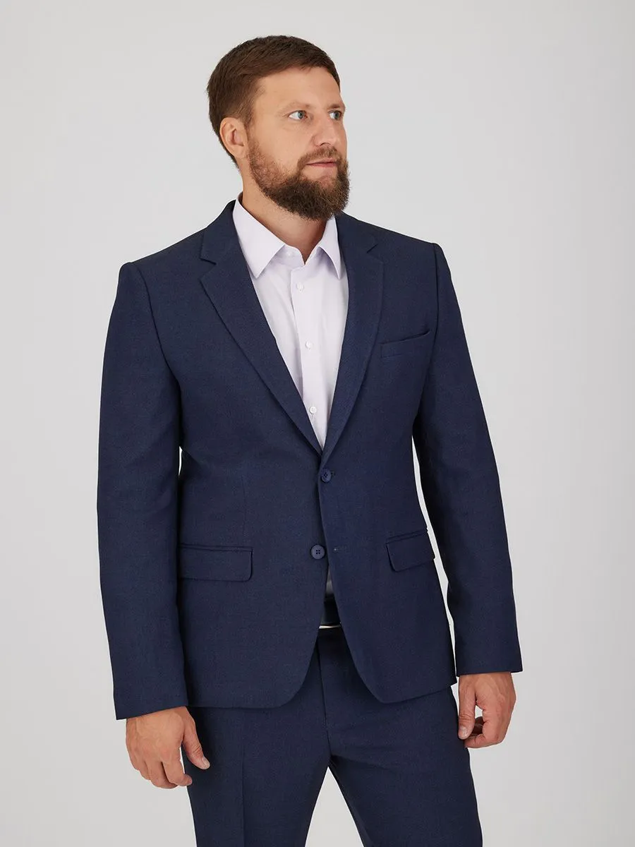 Представляем вашему вниманию элегантный темно-синий мужской костюм с изысканной фактурой ткани. Пиджак современного кроя с дополнительной полнотой, обеспечивает идеальную посадку и комфорт благодаря мягкому плечу. Классическое плечо и классический узкий лацкан шириной придают образу утонченность и современность. Две шлицы сзади обеспечивают свободу движений. Брюки этой модели имеют дополнительно 2 см в талии для максимального удобства.