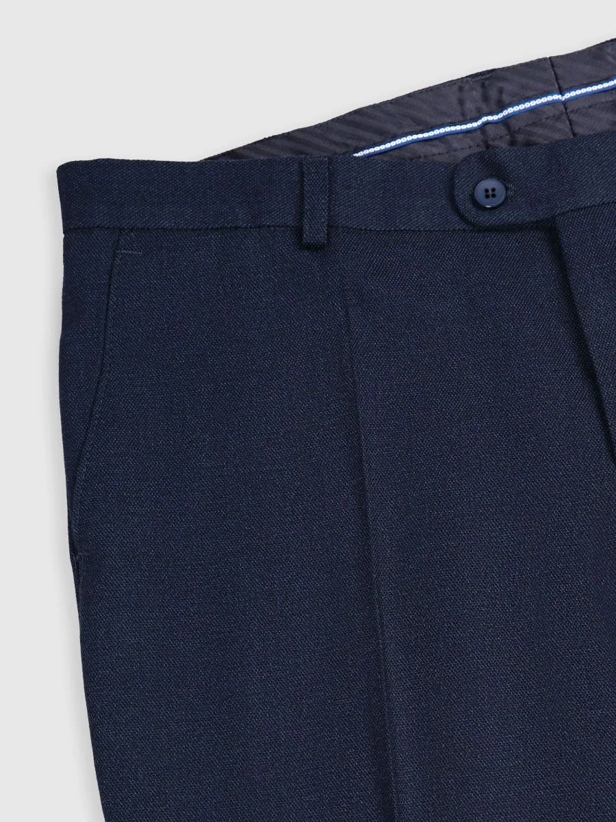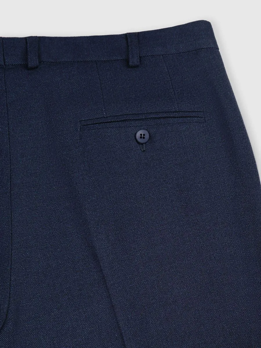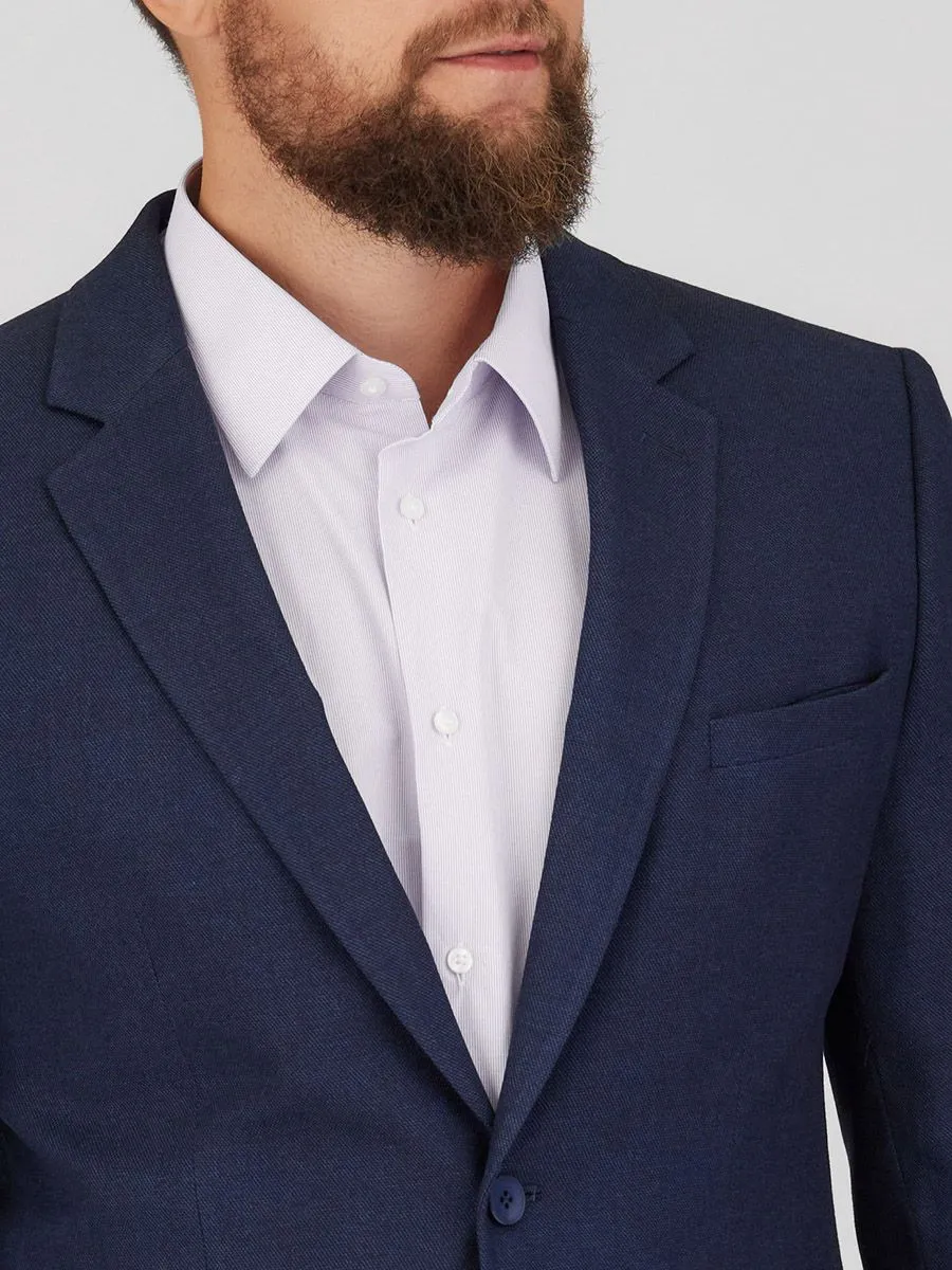 Этот темно-синий мужской костюм – воплощение элегантности и безупречного стиля. Фактурная ткань придает ему изысканность, а классический прямой силуэт пиджака и традиционное плечо подчеркивают мужественность. Широкий лацкан шириной добавляет образу респектабельности.Брюки классического кроя со стрелками отличаются высокой посадкой, обеспечивающей комфорт и визуально стройнящей фигуру. Слегка зауженные к низу брюки привносит современный акцент в классический образ.