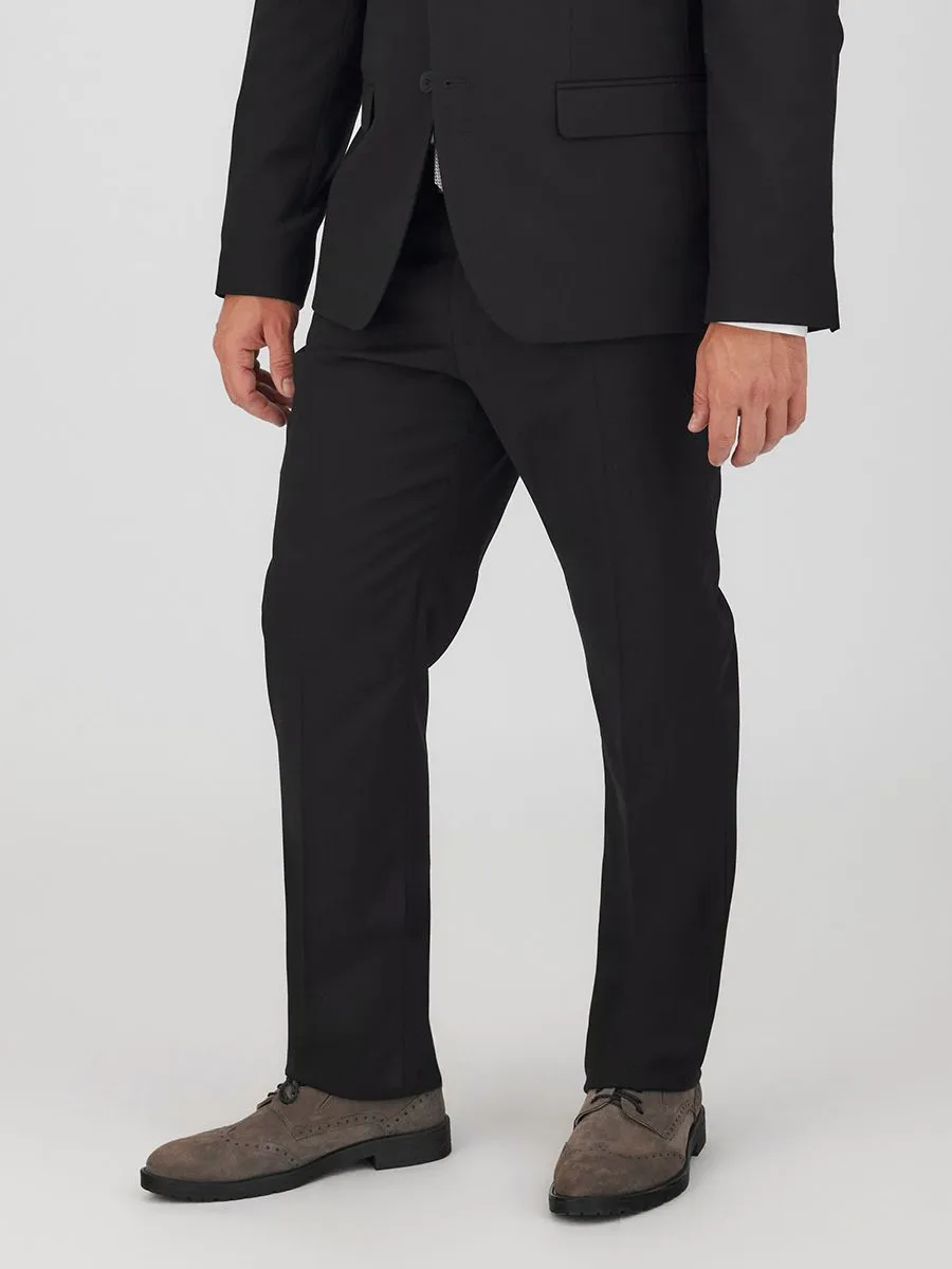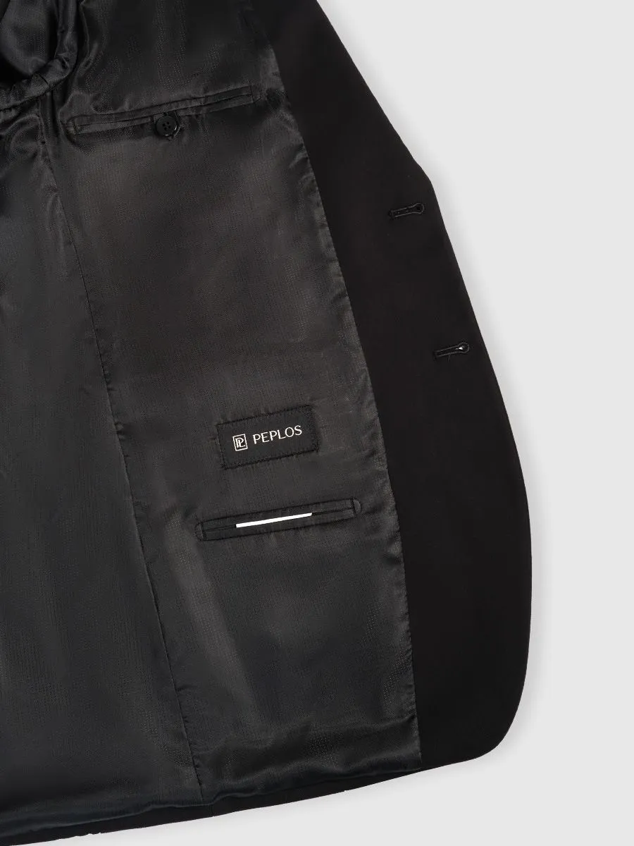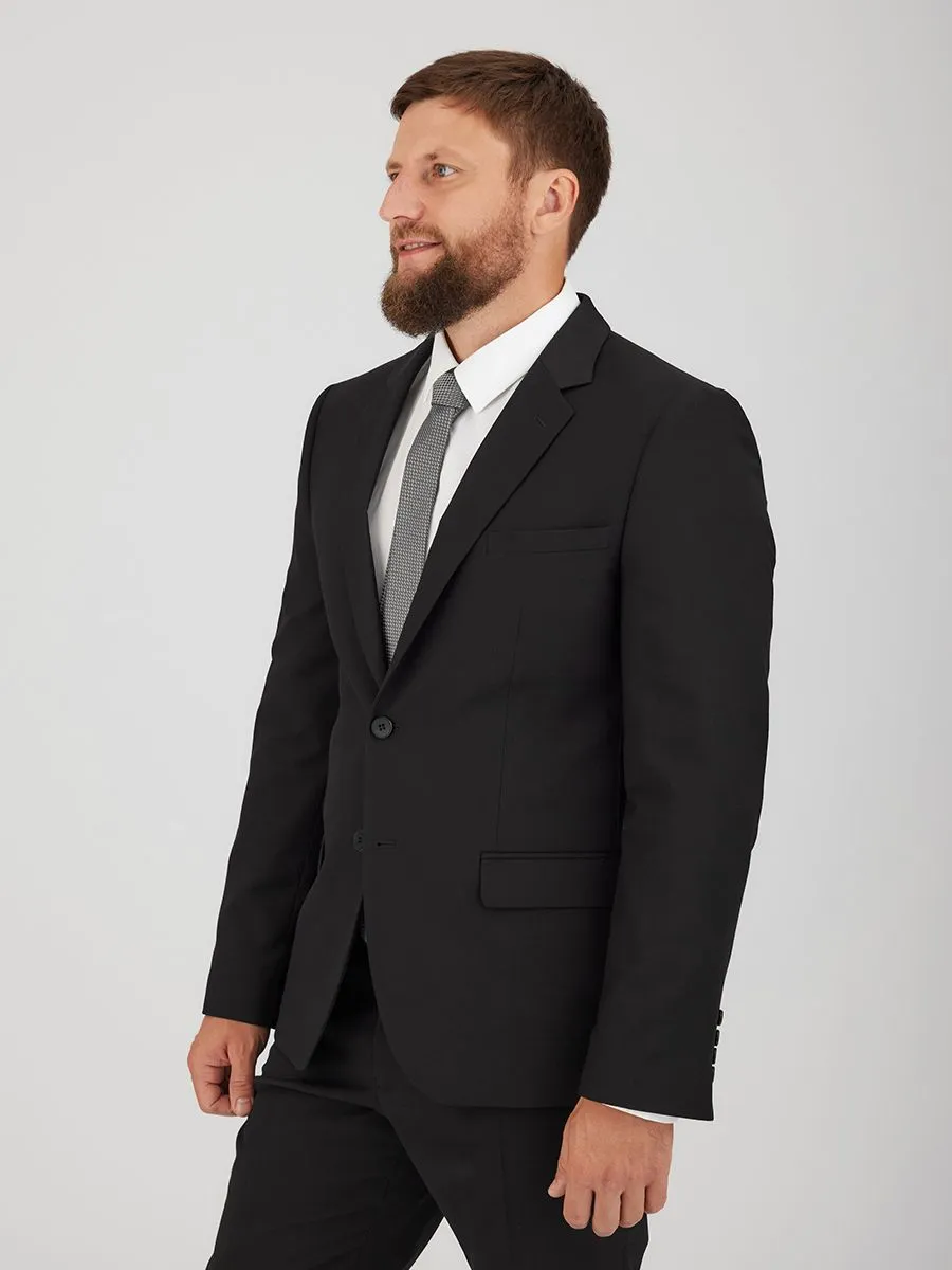 Представляем вашему вниманию черный однотонный мужской костюм. Этот классический ансамбль включает в себя пиджак полуприлегающего силуэта, обеспечивающий комфортную посадку и свободу движений, а также классические брюки со стрелками, выгодно подчеркивающие фигуру. Деликатное классическое плечо и классический узкий лацкан придают пиджаку изысканность и современный вид. Завершает образ одна шлица, обеспечивающая удобство и свободу при движении. Мужские классические брюки со стрелками обладают высокой посадкой талии по задней слонке, что визуально удлиняет ноги и создает стройный силуэт, а слегка зауженный крой низа добавляет современный акцент.