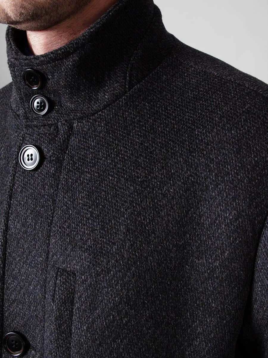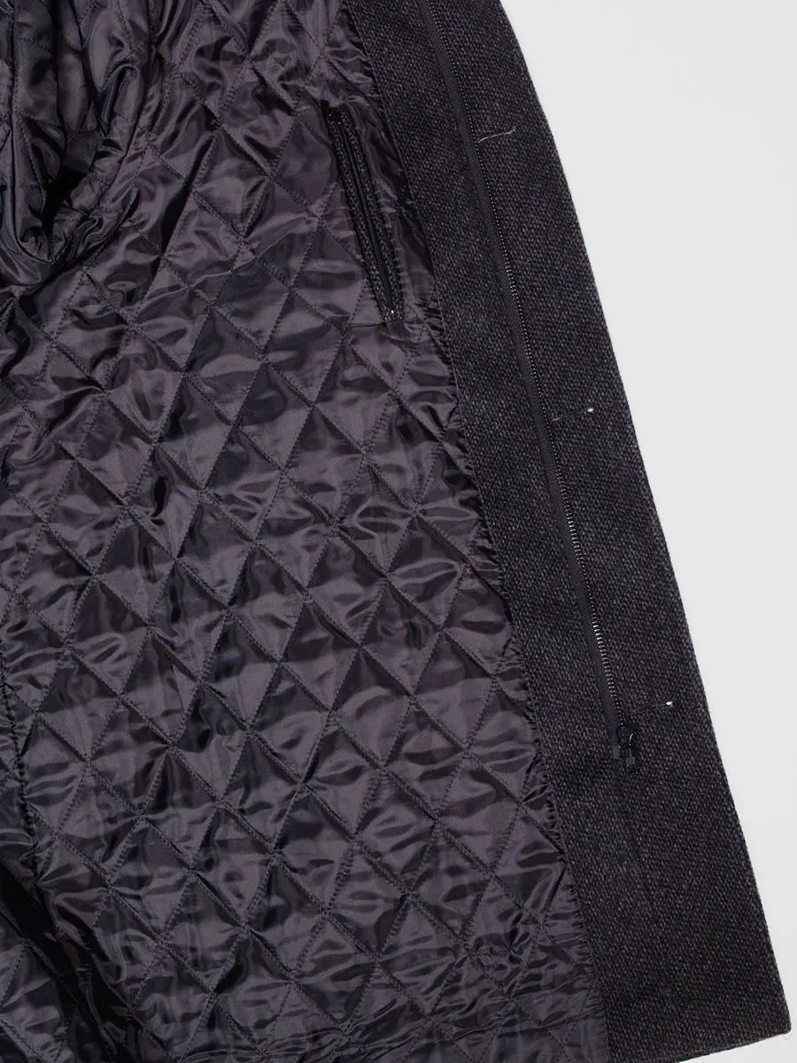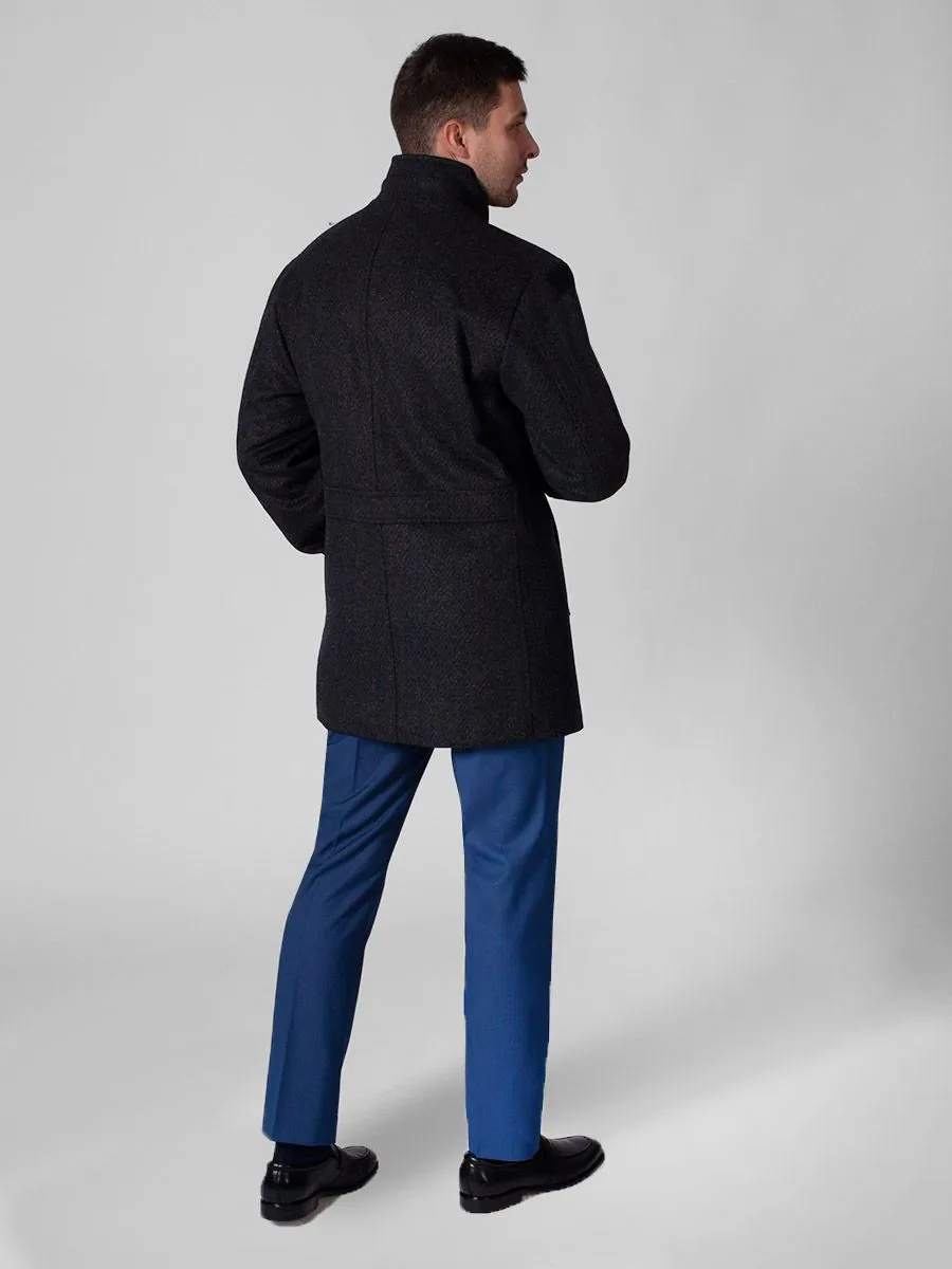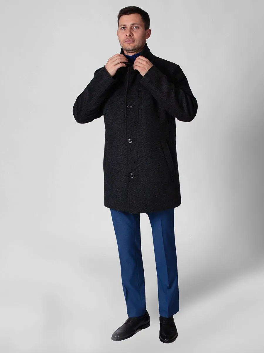 Мужское полуприлегающее пальто Peplos с эффектом крупной вязки. Приятный серый цвет пальто рекомендуется сочетать с темными деловыми костюмами. Модель имеет практичный для осенне-зимнего сезона элемент – воротник-стойку. На подкладе имеется врезной кармашек на молнии. Сам подклад выполнен из стеганой ткани шелковистой фактуры. В состав изделия входит 55% гладкой шерсти, 35% прочного полиэстера и 10% мягкой вискозы.