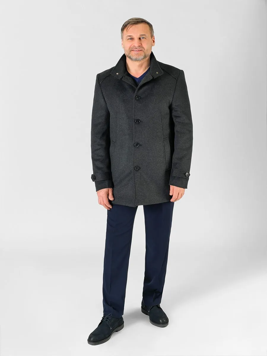 Утепленное мужское пальто -это идеальное решение для холодных дней. В нем есть все, что нужно для ощущения комфорта и тепла в демисезон. Пальто имеет центральную застежку на пуговицы и воротник-стойку с кнопкой, что обеспечивает защиту от ветра и холода. Декоративная черная окантовка на плечах придает пальто элегантный вид. Наше пальто изготовлено из ткани с фактурным микродизайном, состоящей из 55% шерсти, 35% ПЭ и 10% вискозы. Подкладка из стежки плотностью 80г/м2 обеспечивает дополнительную тепловую защиту. Удобные вертикальные карманы с небольшим наклоном и два внутренних кармана дают возможность хранить важные мелочи в безопасности. Длина пальто чуть выше середины бедра, что обеспечит удобство движений и при этом надежно скроет пиджак. Наше пальто не только теплое, но и стильное, подчеркивающее вашу индивидуальность и создающее неповторимый образ.