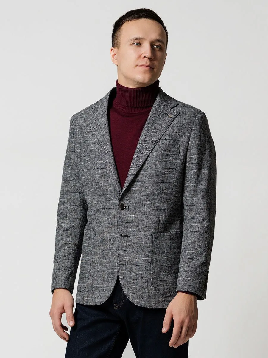 Пиджак выполнен в модном цветовом решении - темно-серый цвет в клетку гленчек. Плетение Глен также известно, как клетка принца Уэльского под одноименным названием "Принц Уэльский". Поэтому можно не сомневаться, что в нем вы всегда будет выглядеть стильно и элегантно. А серый - это цвет, который подходит каждому мужчине и практически всегда будет выглядеть уместно. Особенно актуально сочетание серого пиджака с черной или голубой сорочкой. Пиджак имеет накладные карманы, фигурную листочку и отделочную строчку, при этом отсутствуют плечевые накладки, для придания естественности силуэту.