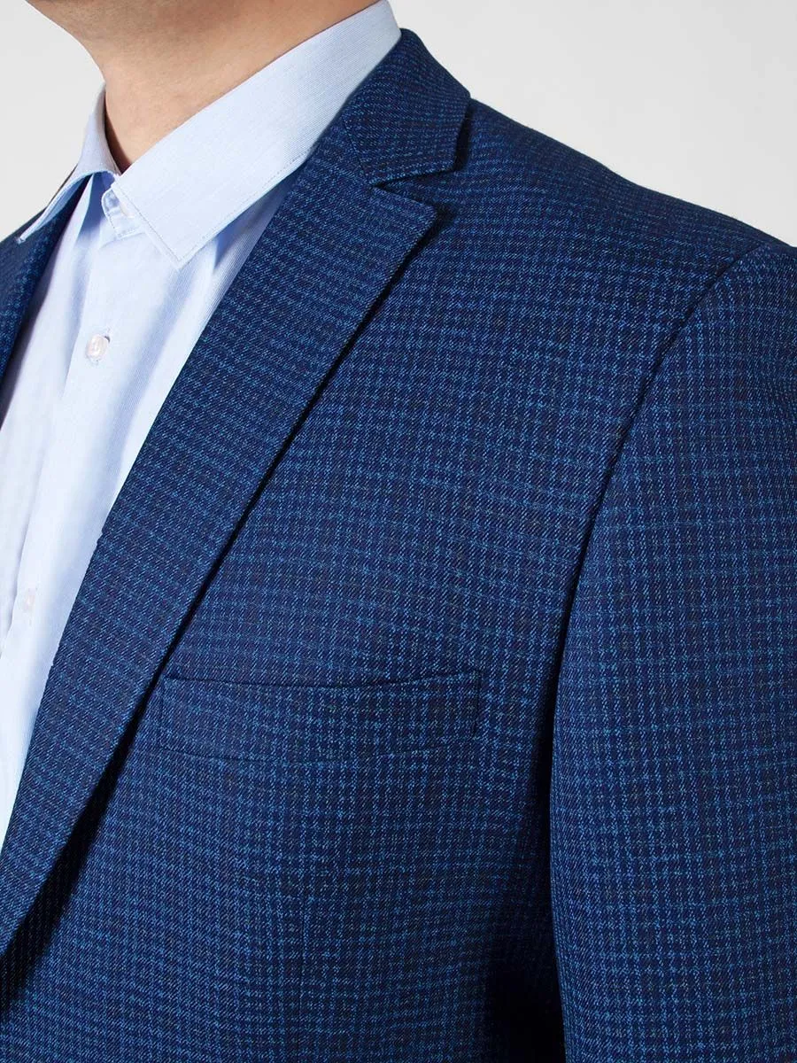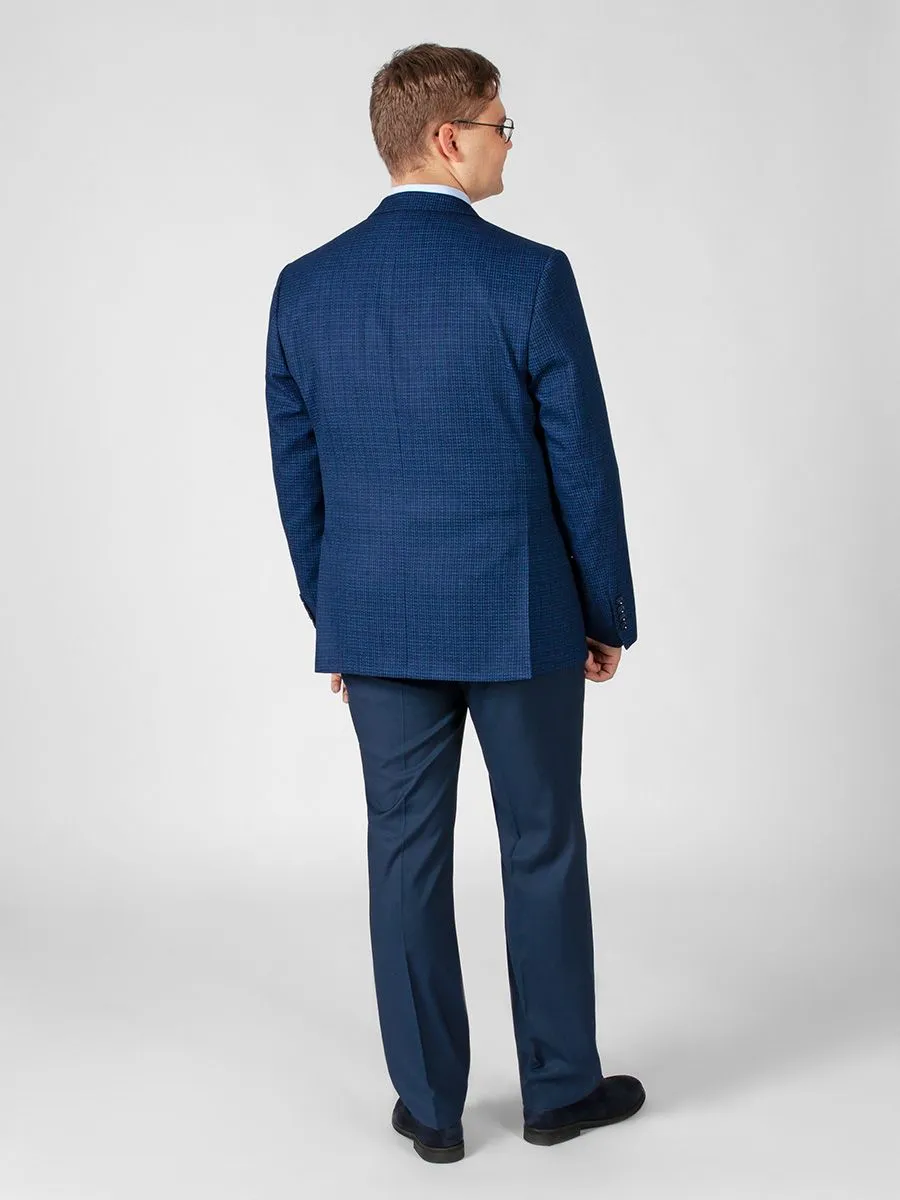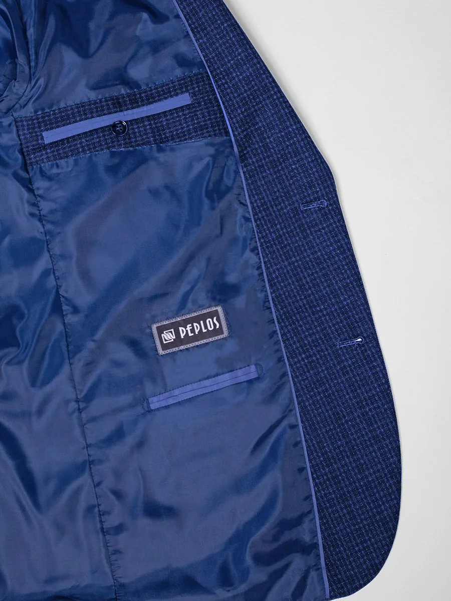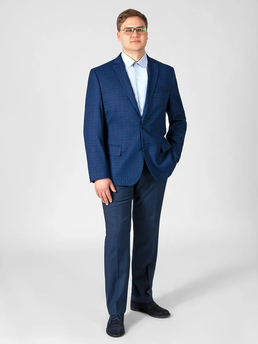 Пиджак Peplos выполнен в классическом силуэте, по спинке идут две шлицы. Размерный ряд пиджака доходит до 124 (62) размера. Пиджак рассчитан на крупных мужчин, так как благодаря классическому силуэту он свободно ложится по фигуре и не утягивает в талии. Насыщенный темно-синий цвет и красивая клетка позволяют носить пиджак как на официальные мероприятия и работу, так и на культурные вечерние мероприятия. Дополнить образ можно однотонными классическими брюками или джинсами.