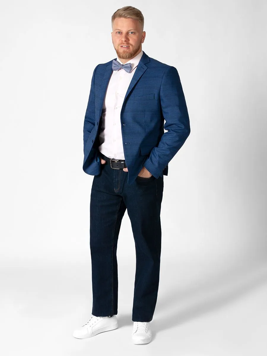 Мужские пиджаки не теряют своей актуальности. Ведь модные пиджаки можно использовать как в привычных классических и деловых образах, так и в неформальных аутфитах, чувствуя себя комфортно и стильно. Современная и лаконичная клетка «Принц Уэльский» позволяет создать праздничный образ, а если его дополнить светлой сорочкой и яркой бабочкой, то образ получится по-настоящему нарядным. Также хорошо пиджак смотрится с темным джинсами, например: Джинсы мужские J19С01