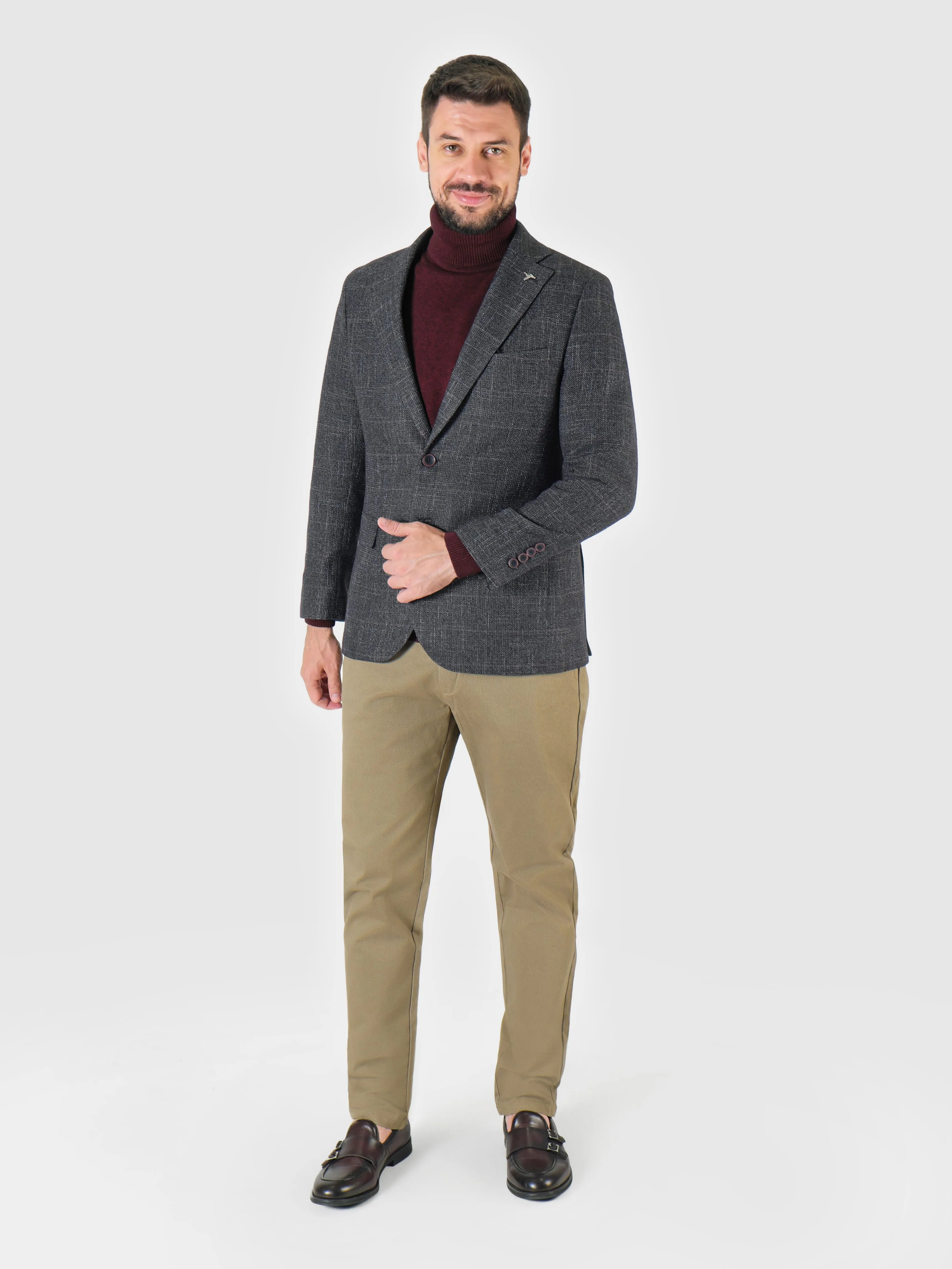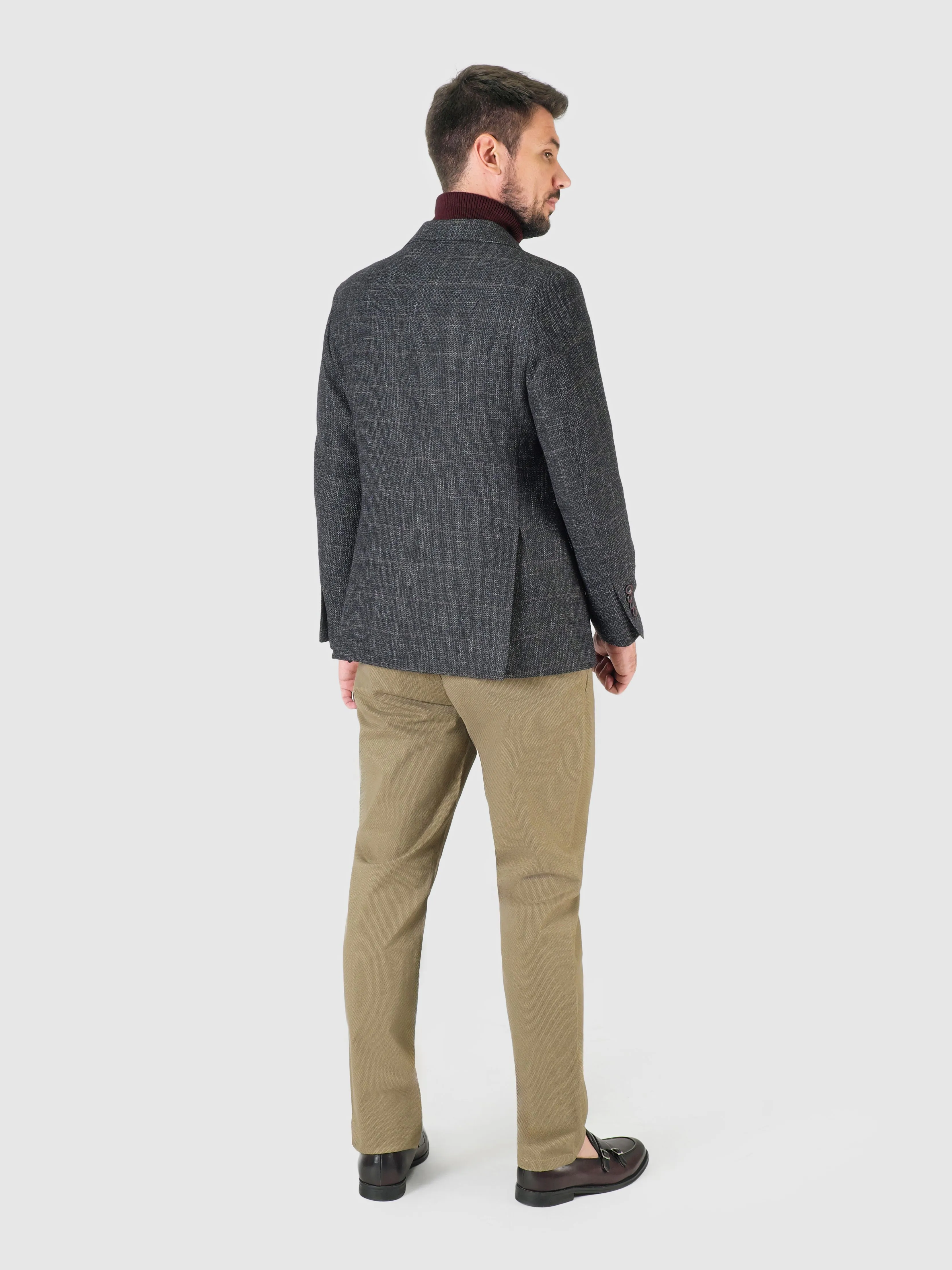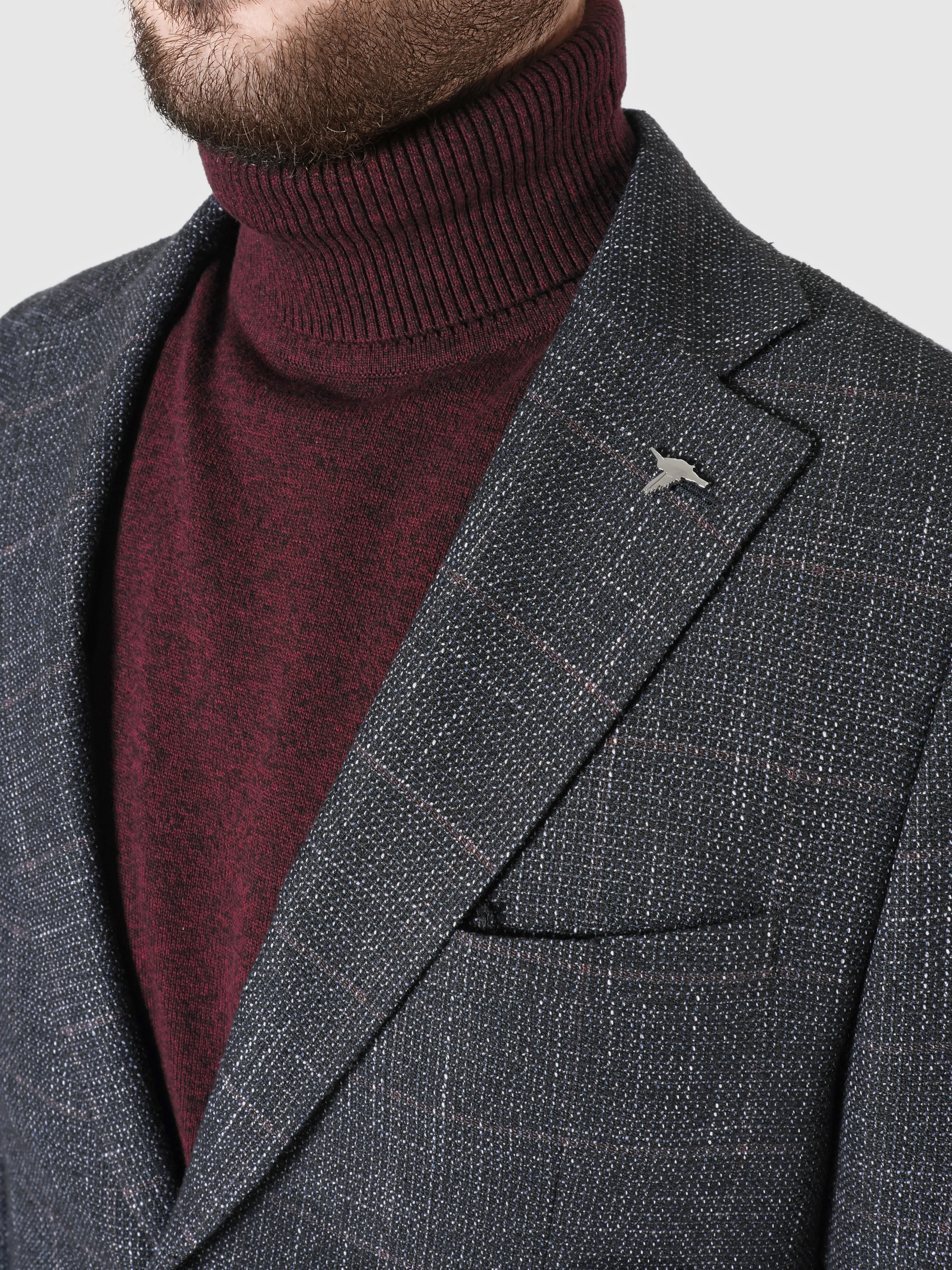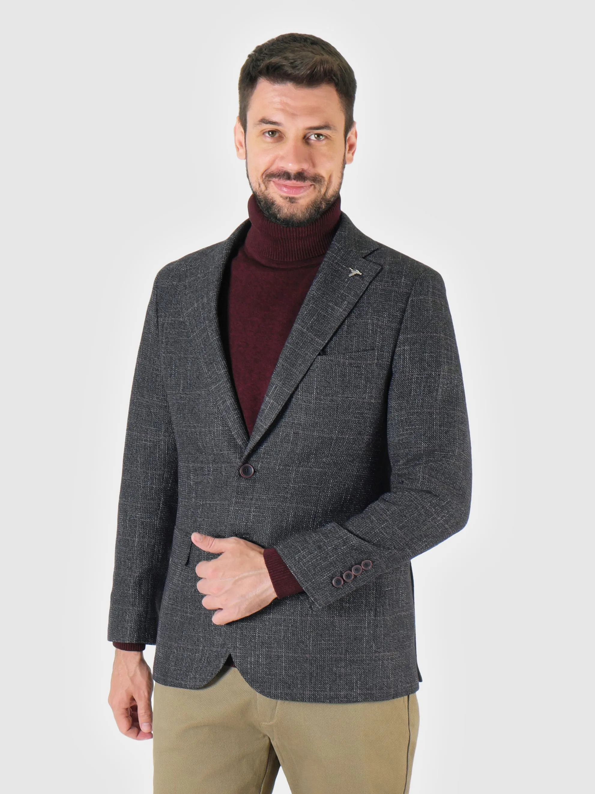Изысканный мужской пиджак Peplos темно-синего цвета поможет создать элегантный и стильный образ для мужчины. Этот пиджак выполнен из ткани темно-синего цвета с вкраплениями переплетенных нитей разного цвета, которые создают необычный контрастный узор. Подклад изделия усилен дублерином, который используется для придания элементу одежды жесткости и поддержания формы.Поэтому даже при интенсивной носке пиджака, его детали не будут деформироваться. Пиджак двубортный, имеет боковые карманы с клапанами и один нагрудный. На манжете имеются декоративные пуговицы и две шлевки на спине. Особенной деталью является наличие петлицы на левом лацкане пиджака, которая оформлена оригинальным фрачником.