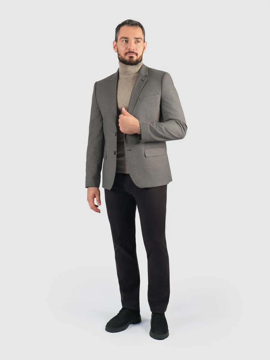 Полуприлегающий силуэт сочетает в себе элементы классического и приталенного стилей. Он слегка облегает фигуру, но не так сильно, как приталенный. Пиджак имеет более узкие линии по сравнению с классическим, подчеркивая форму тела, но не стягивая её.