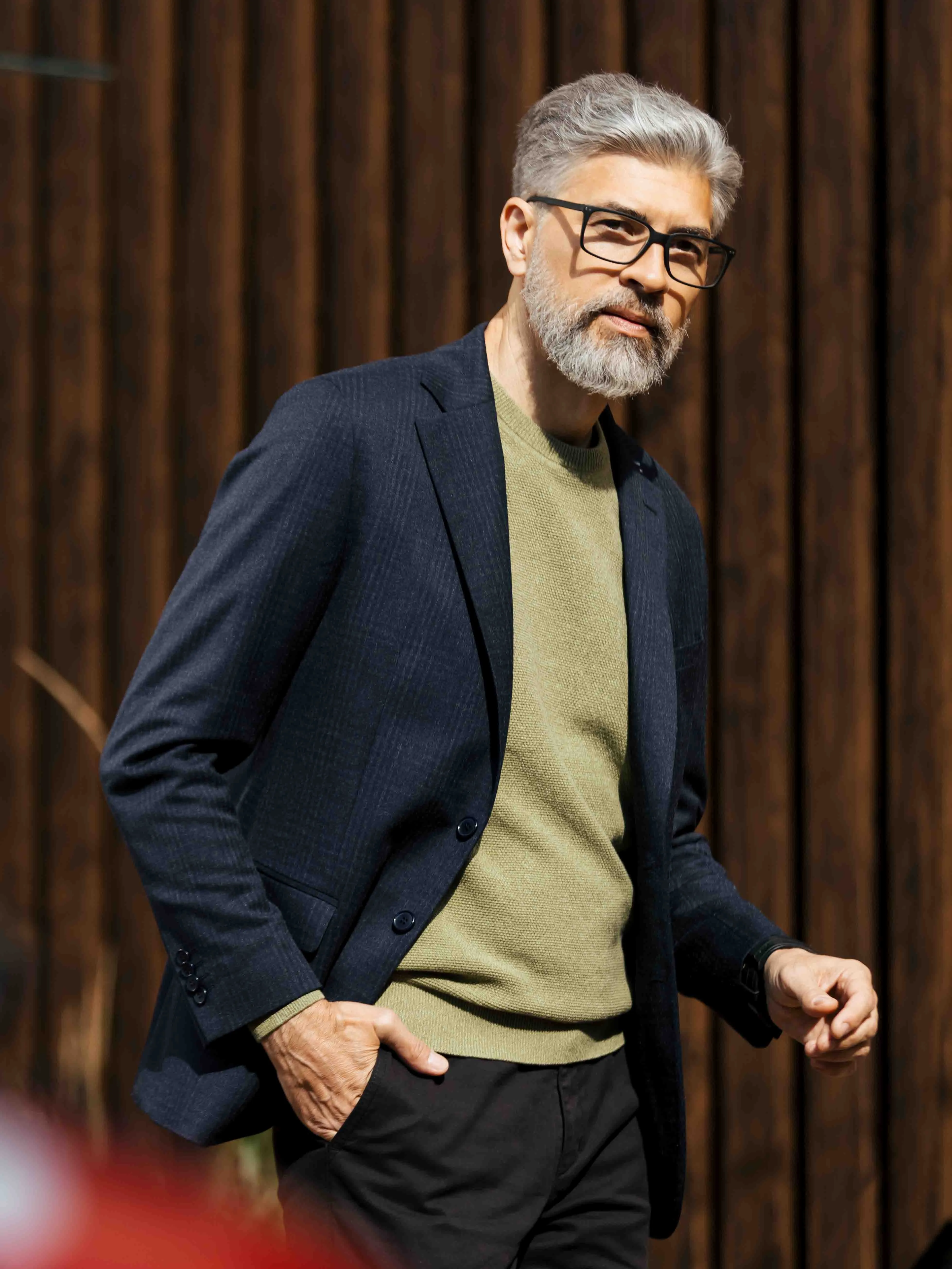 Полуприлегающий силуэт сочетает в себе элементы классического и приталенного стилей. Он слегка облегает фигуру, но не так сильно, как приталенный. Пиджак имеет более узкие линии по сравнению с классическим, подчеркивая форму тела, но не стягивая её.