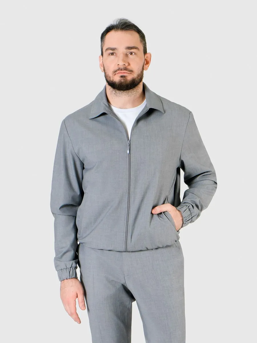 Новая модель бомбера с отложным воротником выполнена в светло-сером оттенке. Пиджак имеет застежку на молнию, резинку по низу и на манжетах изделия, а также боковые прорезные карманы с втачной листочкой. Светло-серый оттенок идеально подходит для летнего образа, при этом он достаточно универсален и легко сочетается с различными оттенками. Еще одним преимуществом является то, что к этому пиджаку можно подобрать брюки из той же костюмной ткани TR24120-201 и создать гармоничный комплект. Несомненно, новая модель бомбера с отложным воротником станет незаменимой вещью в гардеробе каждого модного мужчины. Она сочетает в себе функциональность и стиль, что делает ее привлекательной для самых требовательных покупателей.