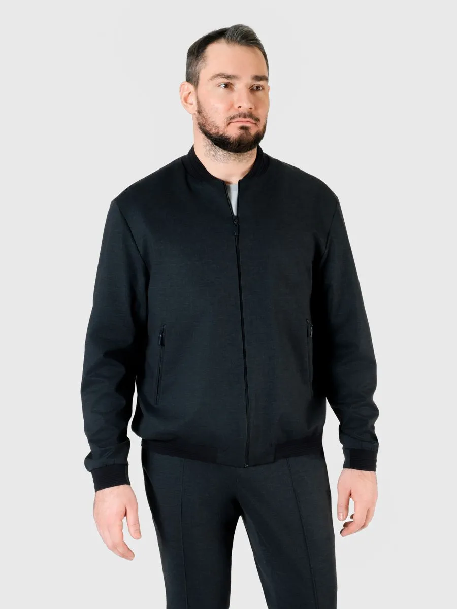 Этот стильный и современный бомбер изготовлен из высококачественного трикотажного материала. Темно-синий оттенок добавляет элегантности и глубины этому изделию, подчеркивая индивидуальность и стиль его обладателя. Особенностью этого бомбера является пестроткань, из которой он изготовлен. Она создает интересную текстурную игру, смешивая разные оттенки синего и создавая уникальные узоры. Благодаря этому бомбер выглядит привлекательно и привлекает внимание окружающих. Этот пиджак-бомбер можно носить как отдельно в сочетании с джинсами или брюками, так и виде костюма, который получается в тандеме с брюками TR24134-200. Невероятно модный, удобный и универсальный бомбер станет самым любимым предметом в вашем гардеробе!