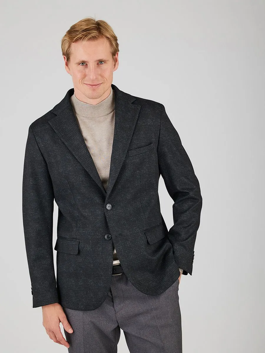 Элегантный трикотажный мужской пиджак, выполненный в классическом черном цвете, станет выразительным акцентом в вашем гардеробе. Полуприлегающий силуэт искусно подчеркивает достоинства фигуры, при этом обеспечивая комфорт и свободу движений. Неконтрастная клетка придает пиджаку изысканную сдержанность и делает его универсальным выбором для различных случаев.