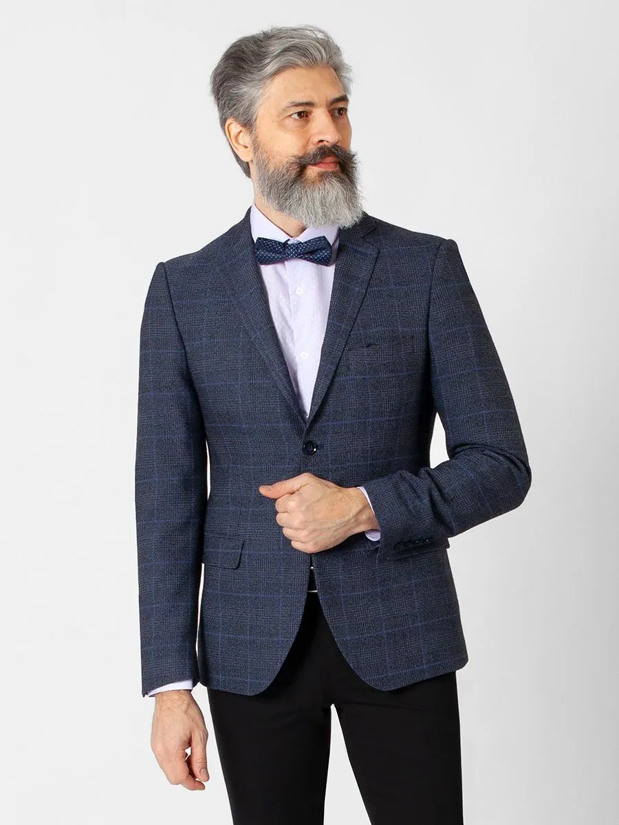 Праздничный демисезонный пиджак в стиле CASUAL будет шикарно смотреться на мужчине в любой обстановке. Черничный цвет с крупной светло-синей клеткой придают образу торжественности и яркости. Приталенная модель пиджака подчеркивает форму тела. Высокий процент содержания полиэстера делает ткань прочной и износостойкой. Лен, хлопок и спандекс добавляют мягкости и эластичности. Для любителей полуприлегающих изделий создана модель JA19031-R.