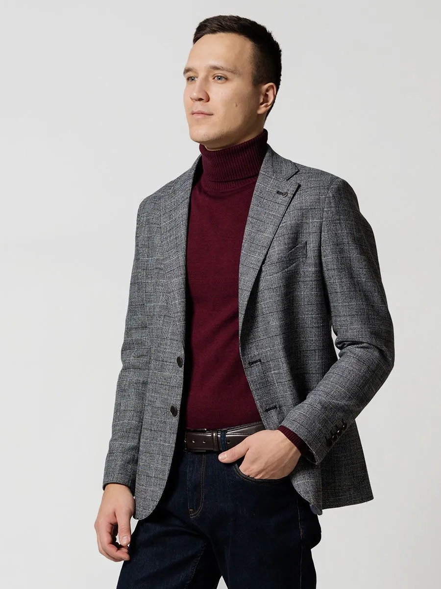 Пиджак выполнен в модном цветовом решении - темно-серый цвет в клетку гленчек. Плетение Глен также известно, как клетка принца Уэльского под одноименным названием "Принц Уэльский". Поэтому можно не сомневаться, что в нем вы всегда будет выглядеть стильно и элегантно. А серый - это цвет, который подходит каждому мужчине и практически всегда будет выглядеть уместно. Особенно актуально сочетание серого пиджака с черной или голубой сорочкой. Пиджак имеет накладные карманы, фигурную листочку и отделочную строчку, при этом отсутствуют плечевые накладки, для придания естественности силуэту.
