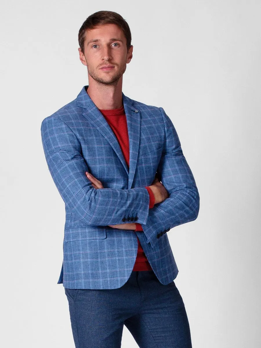 Одним из самых актуальных современных предметов мужского образа является пиджак в стиле Casual. Светло-голубой пиджак Peplos с рисунком в клетку сочетает в себе светлые и неброские линии. Приталенная модель изделия сядет строго по фигуре мужчины, подчеркивая её контуры. Содержащиеся в материале волокна хлопка и льна создают особую атмосферу для тела – в ней не бывает жарко или холодно, а кожа может свободно дышать.