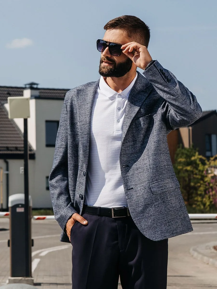 Полуприлегающий силуэт сочетает в себе элементы классического и приталенного стилей. Он слегка облегает фигуру, но не так сильно, как приталенный. Пиджак имеет более узкие линии по сравнению с классическим, подчеркивая форму тела, но не стягивая её.