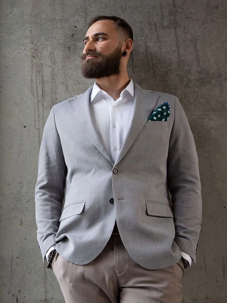 Наш новый мужской пиджак в светло-сером цвете - это элегантный и стильный выбор для любого мужчины, который ценит комфорт, качество и изысканность. Изготовленный из 100% хлопка, он не только выглядит превосходно, но и обеспечивает комфорт на протяжении всего дня. Полуприлегающий силуэт создает идеально подогнанный и аккуратный вид, что подчеркивает вашу мужественность и уверенность. Накладки на пиджаке выполнены в тон основного изделия - это дополнительный элемент стиля, который делает его еще более интересным и оригинальным. Выдержанный светло-серый оттенок позволяет этому пиджаку быть универсальным и прекрасным выбором для любых повседневных и формальных событий. Независимо от того, на что вы решите его надеть, он гарантировано привлечет внимание и задаст тон вашему стилю. Ведь качественный пиджак - это всегда отличный выбор!