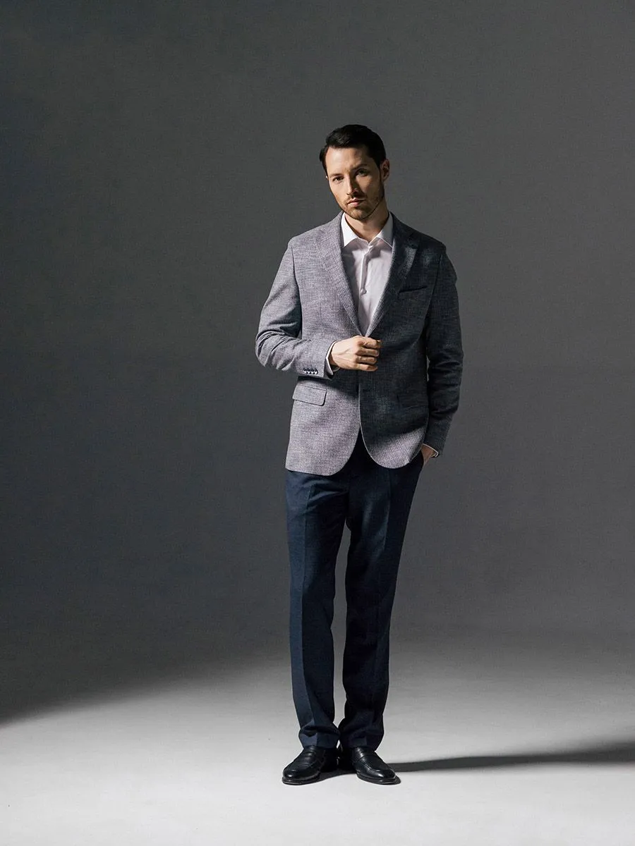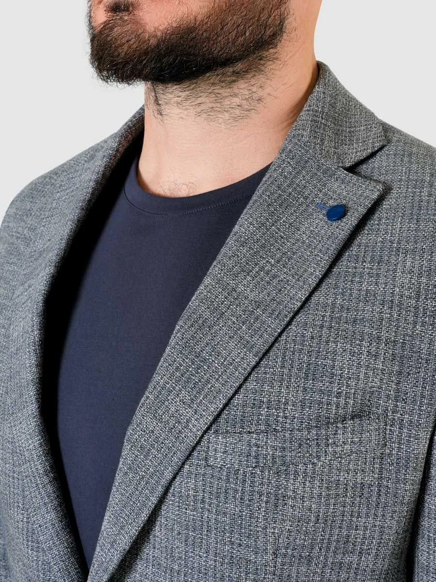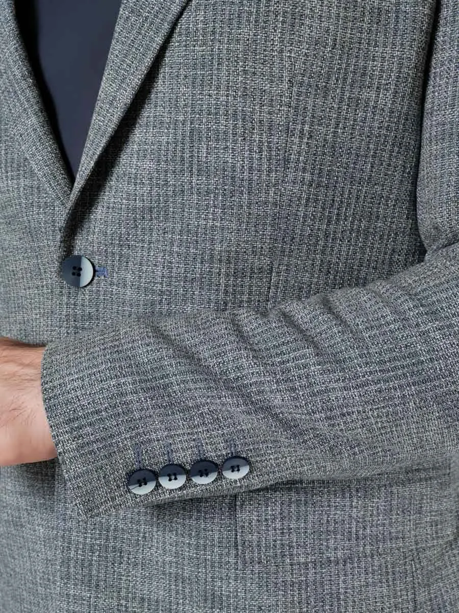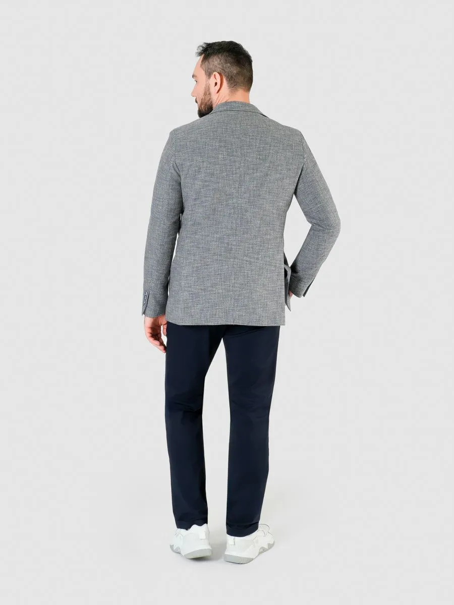 Полуприлегающий мужской пиджак в серо-голубом оттенке с меланжевым эффектом – это прекрасное дополнение к гардеробу каждого стильного мужчины. Его отличительной особенностью являются акцентные пуговицы синего цвета, которые добавляют шарм и изысканность этому изделию. Этот пиджак настоящая находка. Он идеально подходит для создания как классического образа, с сорочкой и соответствующими брюками, так и повседневного - с футболкой и кедами. В классическом варианте он придает неподдельную элегантность и респектабельность, подчеркивая статус своего обладателя. В повседневных сочетаниях он олицетворяет свежесть, легкость и стиль, позволяя мужчине чувствовать себя уверенно и комфортно в любой ситуации.Натуральные и качественные материалы, из которых он изготовлен (в составе пиджака 35% хлопка), обеспечат комфорт и удобство в носке. Ткань приятная на ощупь, дышащая и не сковывающая движений. Изделие изготовлено с большим вниманием к деталям, что придает ему высокое качество и прочность.
