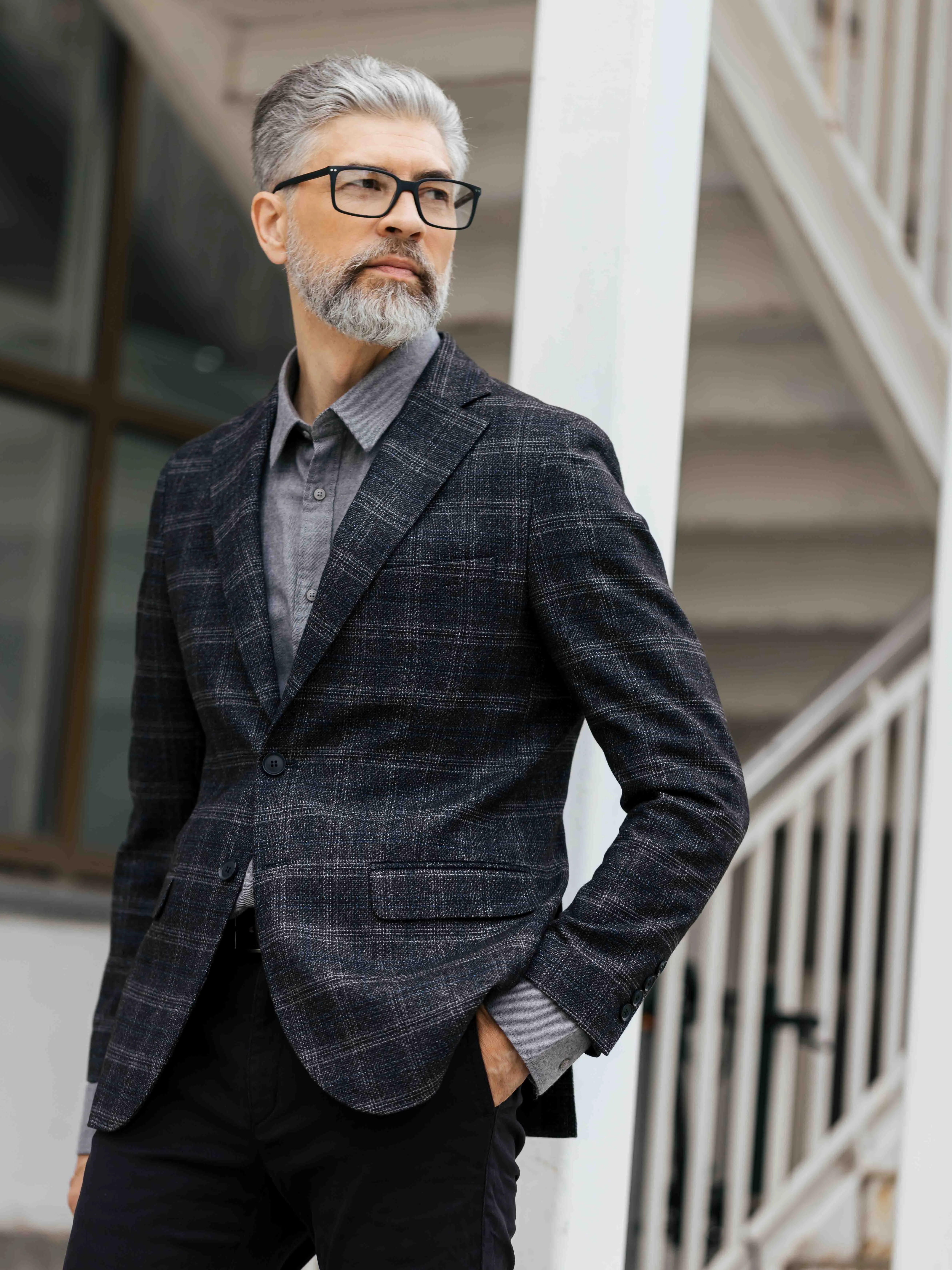 Теплый пиджак в клетку представлен в силуэте Regular.Свободный силуэт позволят одеть под пиджак фланелевую рубашку, водолазку или тонкий пуловер, чтобы чувствовать себя тепло и комфортно в холодное время года.