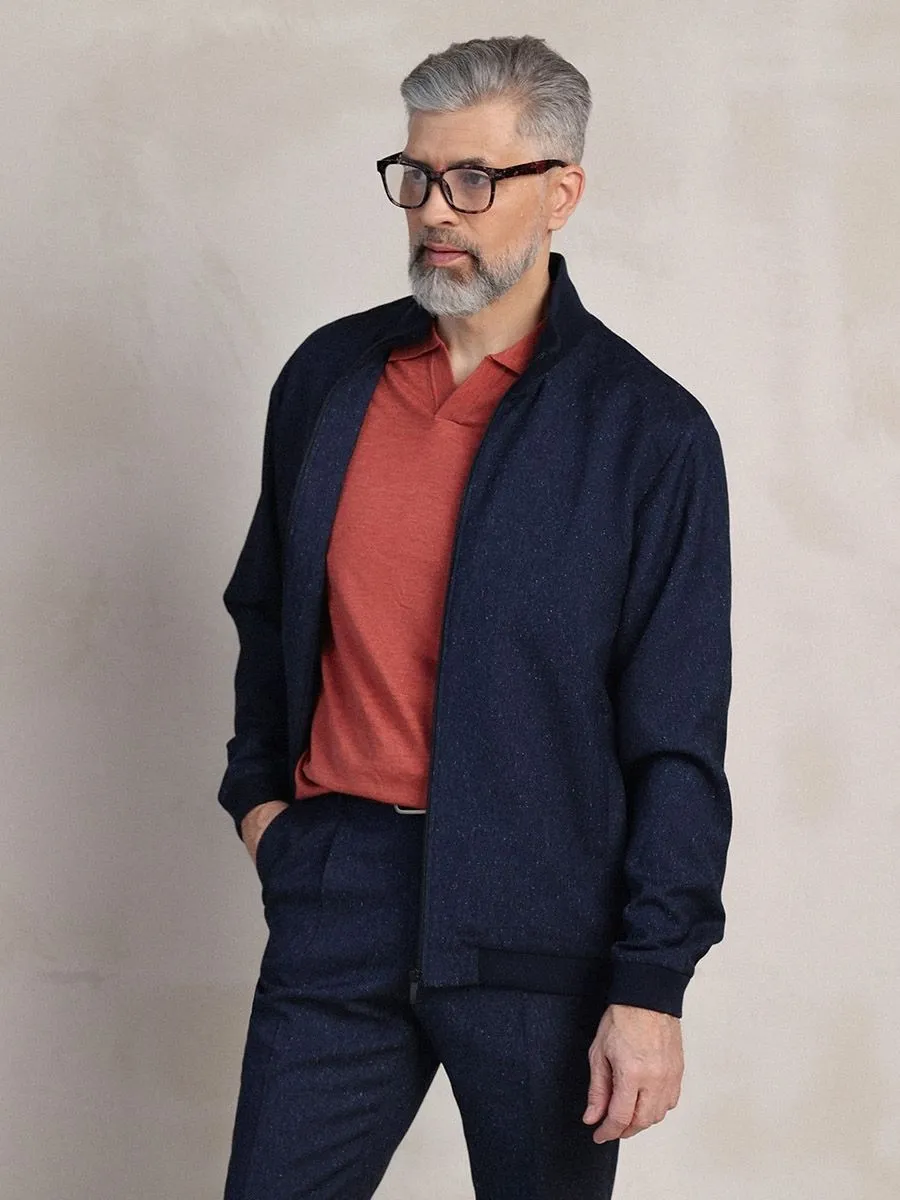 Этот бомбер – идеальный выбор для создания стильного и непринужденного образа. Темно-синий цвет придает ему элегантность и универсальность, позволяя легко сочетать его с другими предметами гардероба. Пестроткань добавляет текстуры и визуального интереса, делая бомбер не просто функциональной вещью, а акцентным элементом. Воротник-стойка из рибаны обеспечивает комфортную посадку. Преимуществом данной модели является возможность создания полноценного комплекта. Дополнив бомбер брюками (TR25162-224) из такой же ткани, вы получите стильный и гармоничный образ, который подчеркнет вашу индивидуальность и внимание к деталям. Этот комплект идеально подойдет для тех, кто ценит комфорт, функциональность и современный дизайн.