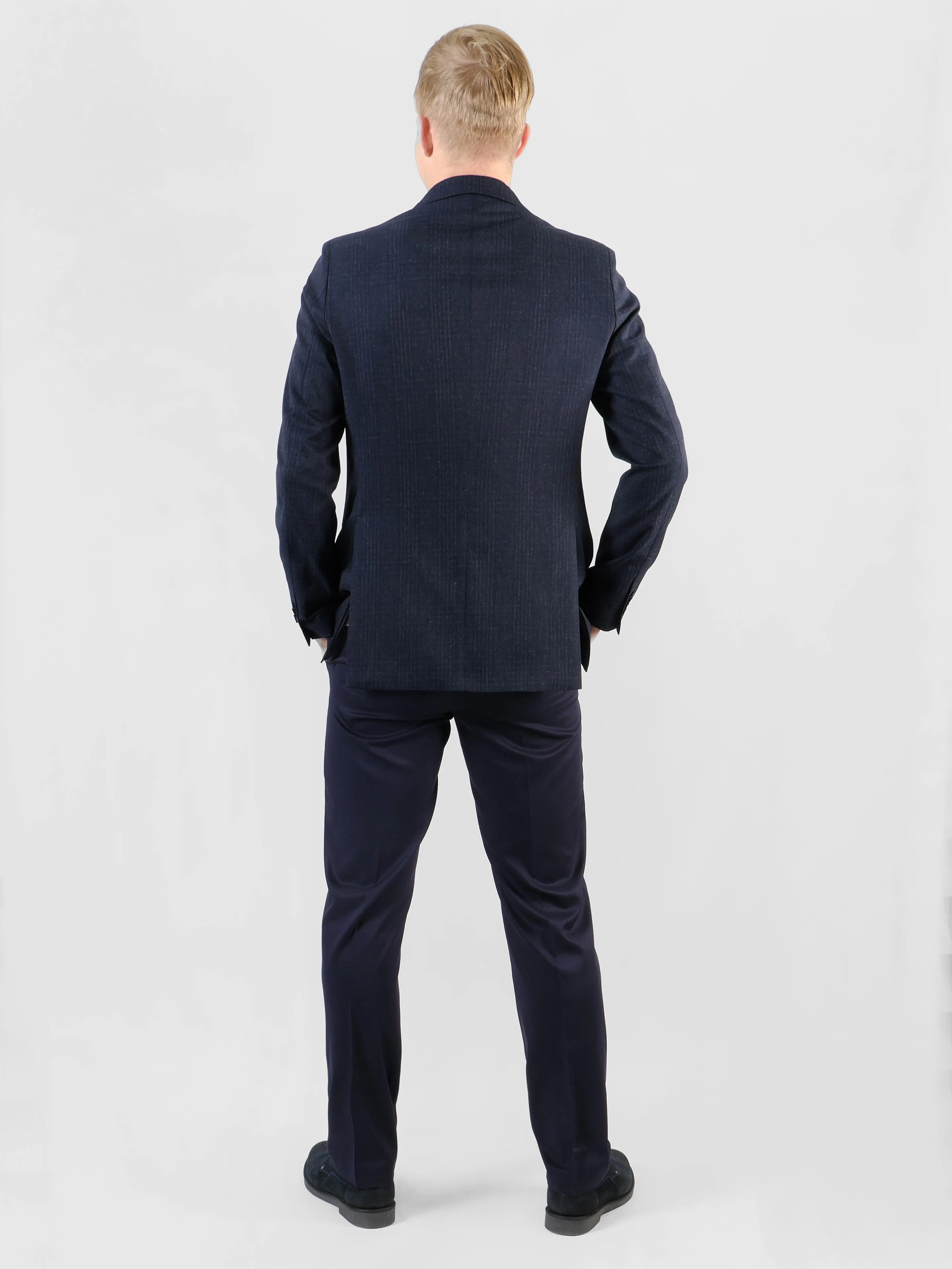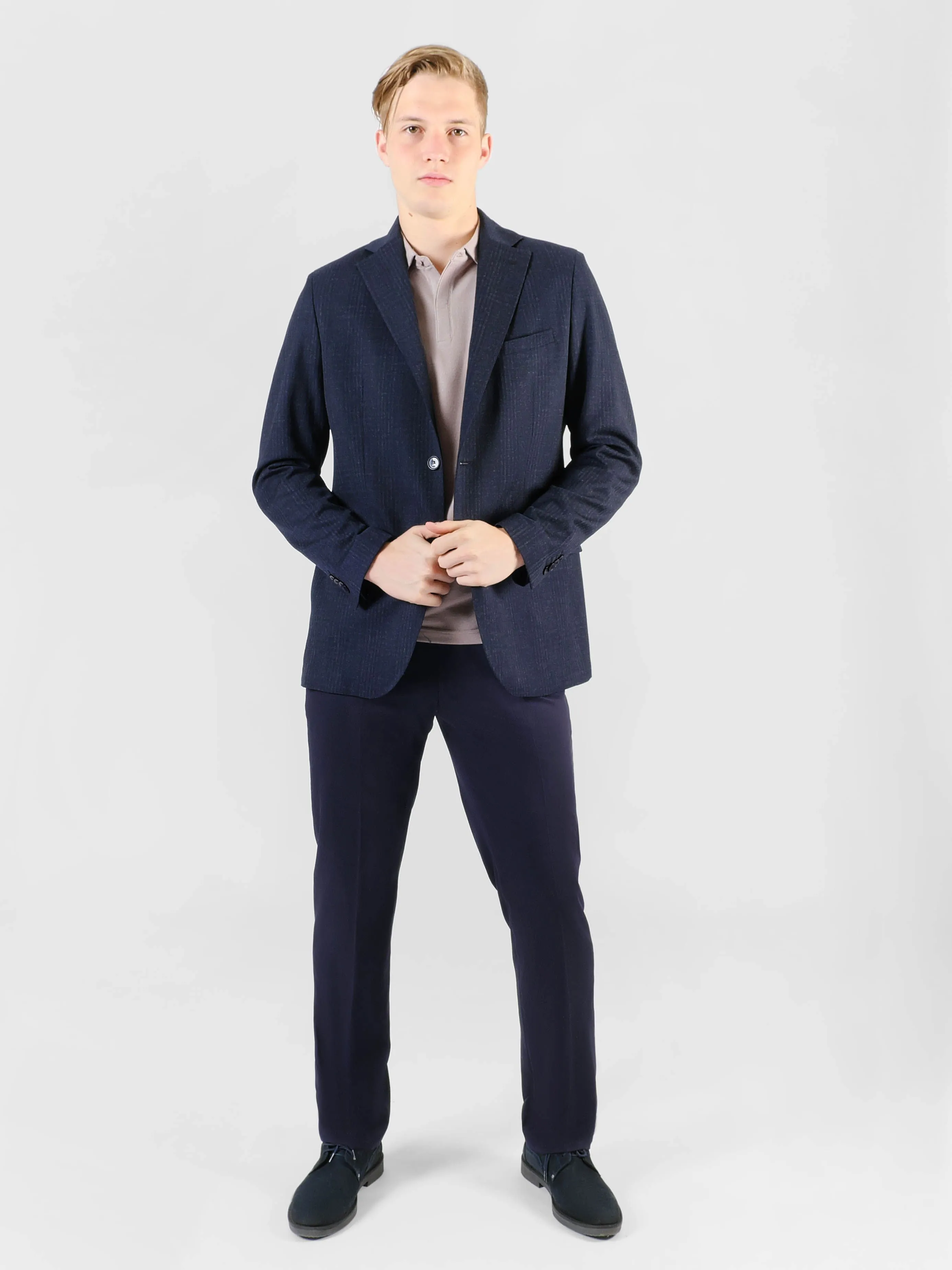 Полуприлегающий силуэт сочетает в себе элементы классического и приталенного стилей. Он слегка облегает фигуру, но не так сильно, как приталенный. Пиджак имеет более узкие линии по сравнению с классическим, подчеркивая форму тела, но не стягивая её.