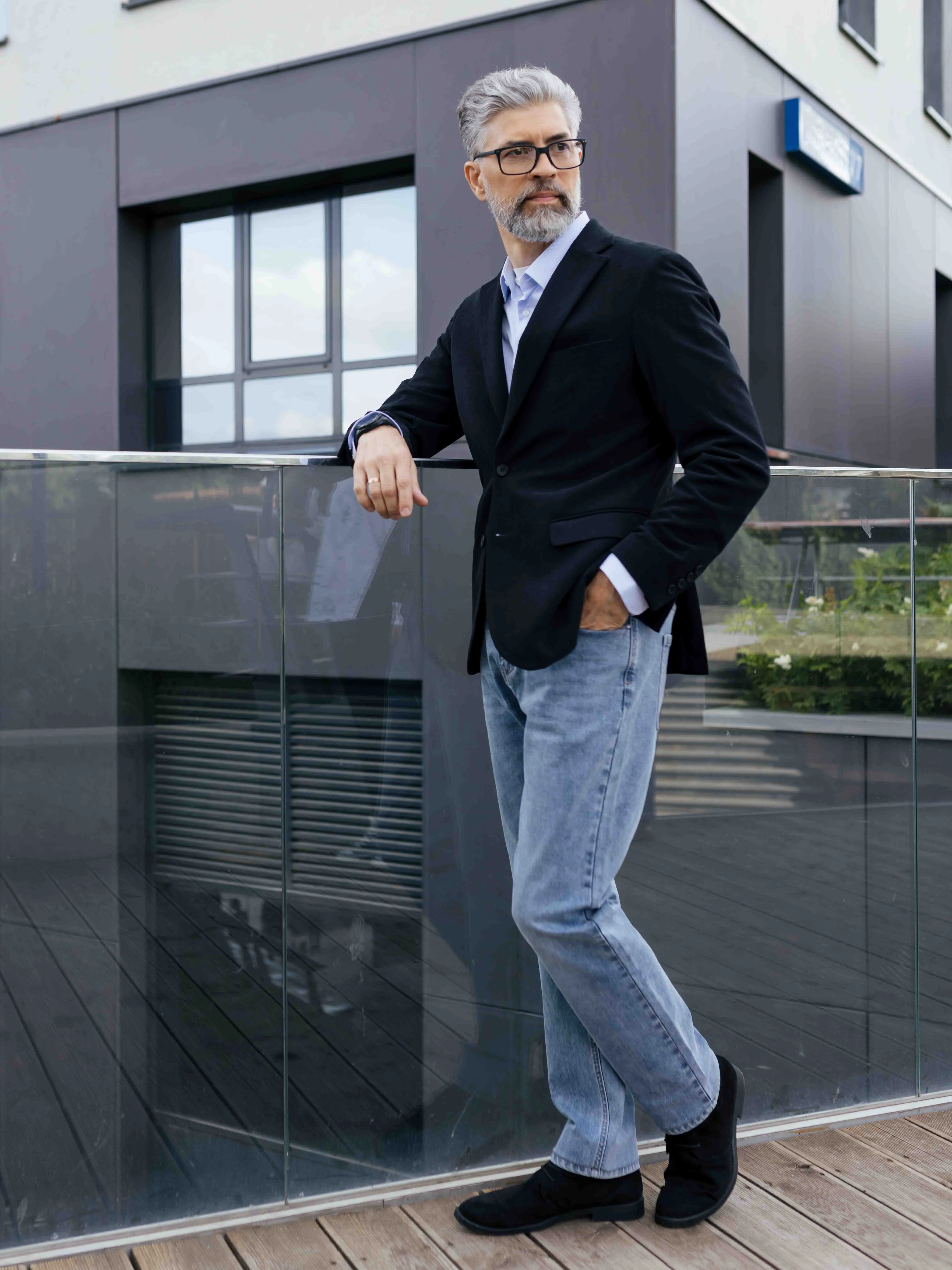 Полуприлегающий силуэт сочетает в себе элементы классического и приталенного стилей. Он слегка облегает фигуру, но не так сильно, как приталенный. Пиджак имеет более узкие линии по сравнению с классическим, подчеркивая форму тела, но не стягивая её.