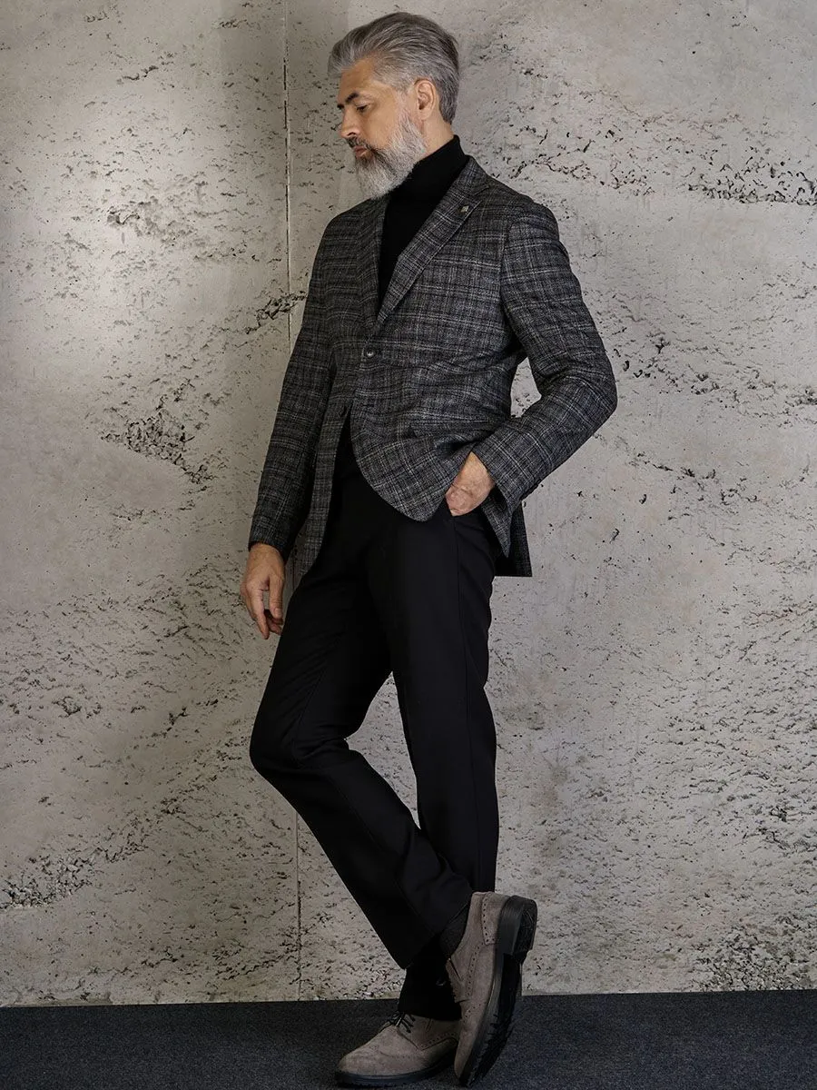 Этот контрастный черно-белый мужской пиджак приковывает взгляд своим смелым дизайном. Модель приталенного силуэта элегантно подчеркивает фигуру, а увеличенная спинка прекрасно подходит для обладателей широкого плечевого пояса. Современное облегченное плечо без наплыва с отделочной строчкой по окату, придает пиджаку непринужденный, но в то же время изысканный вид. Широкий лацкан добавляет образу нотку ретро-шика, а две шлицы сзади обеспечивают свободу движений. Практичные боковые карманы в рамку с клапаном завершают этот безупречный ансамбль, делая его идеальным выбором для современного мужчины, ценящего стиль и комфорт.
