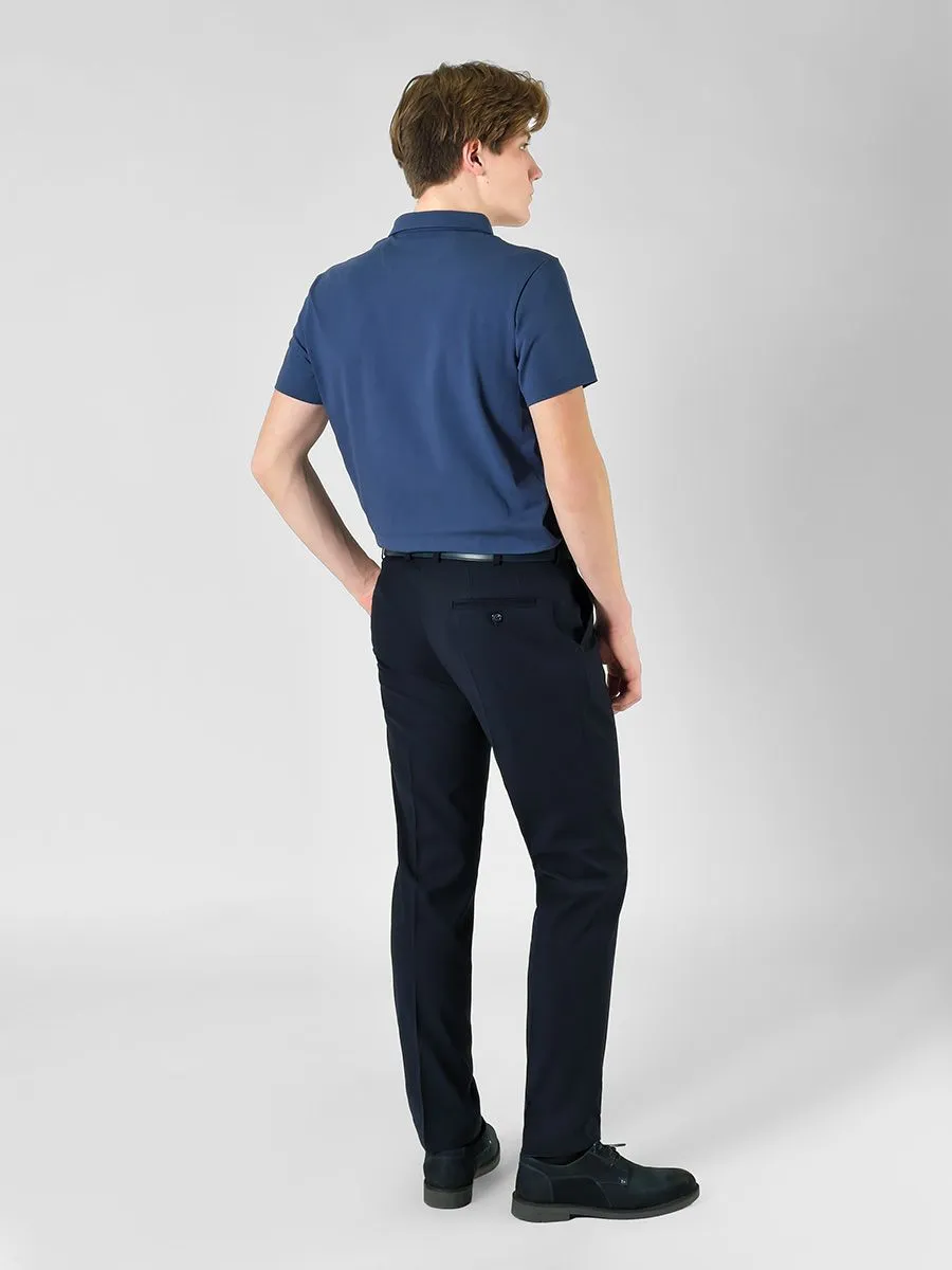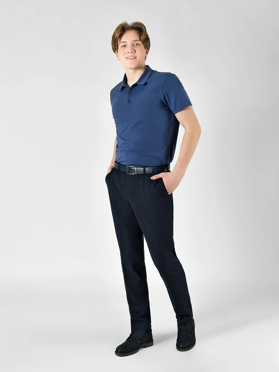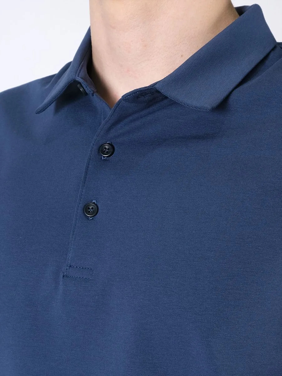 Поло глубокого синего цвета, а точнее цвета индиго изготовлено из хлопковой ткани с добавлением лайкры. Некоторые психологи приписывают цвету индиго такие свойства как: влияние на способность мыслить стратегически и логически, стимулирование творческого потенциала, а также благотворное действие на мотивацию человека. В любом случае на такой удивительный и глубокий цвет приятно смотреть. А натуральный хлопковый состав обеспечивает комфорт носки, лайкра добавляет эластичности для свободы движений. Силуэт у поло прямой, его можно сочетать как с классическими брюками, так и с брюками Casual, и конечно, шортами.