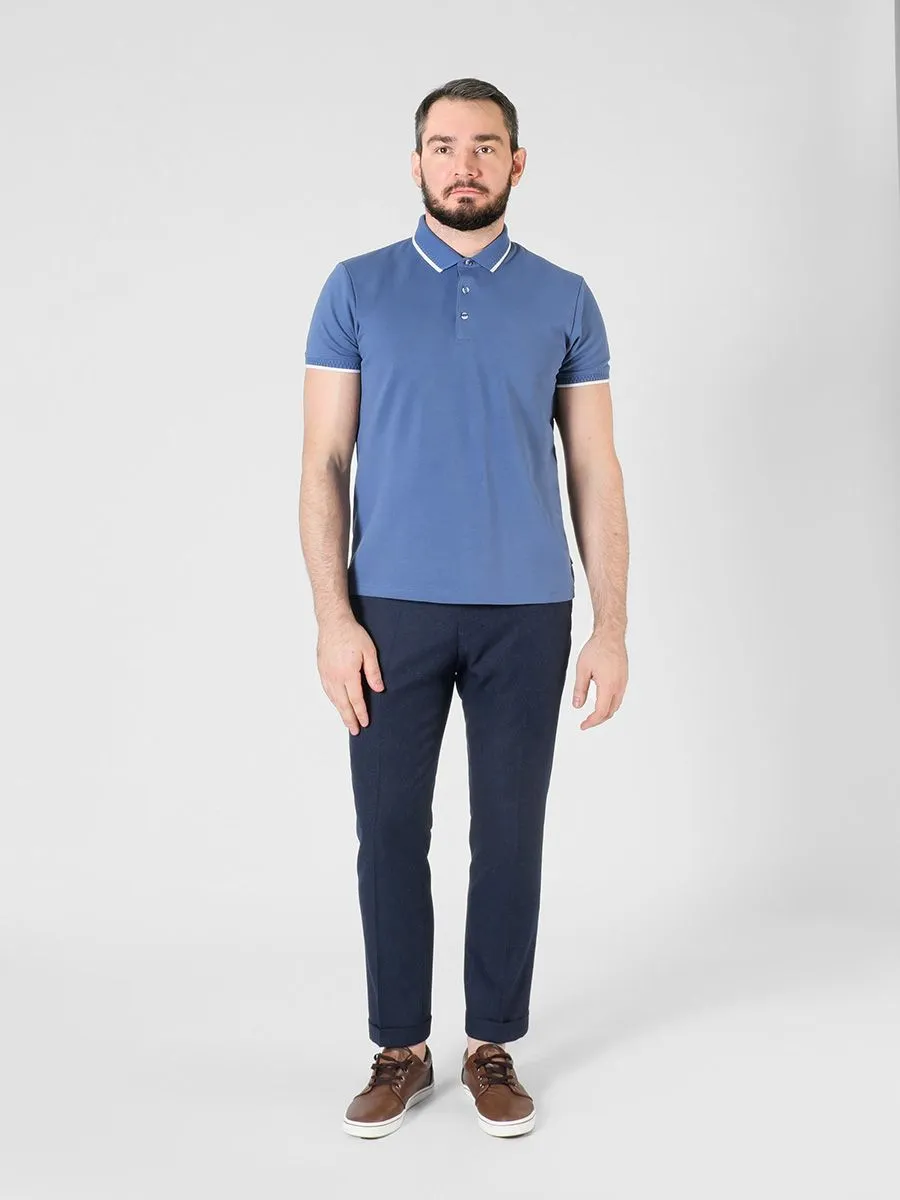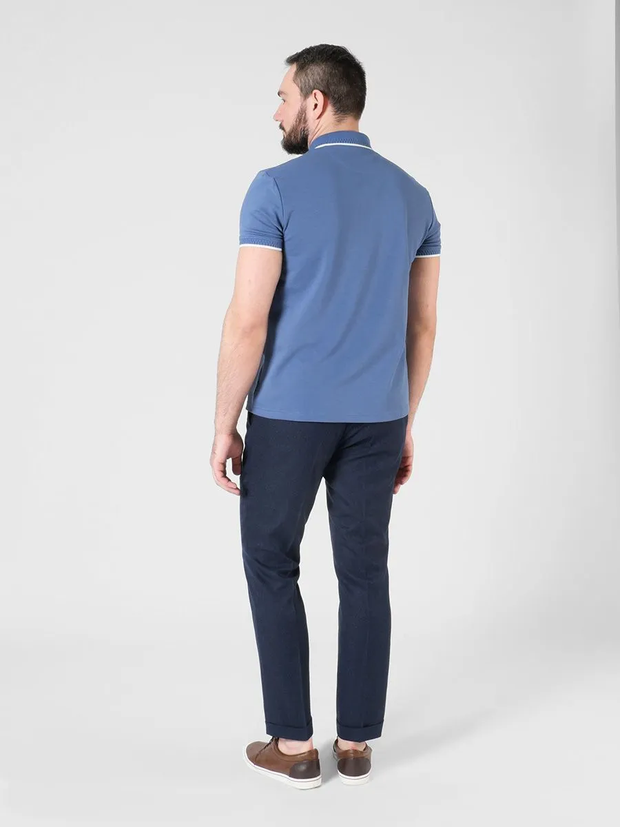 Поло с отложным воротником – это классический и стильный элемент гардероба, который позволяет создать элегантный образ и придать некоторую изюминку даже обычному повседневному наряду. Особенностью такого поло является жаккардовая отделка на воротнике и рукавах, которая создает объемный узор и придает поло дополнительный акцент и уникальность. Так же, воротник и каемка рукавов выделяются контрастной белой полоской, благодаря чему, поло выглядит более роскошно и эксклюзивно. Важной характеристикой поло является его приталенный силуэт. Это означает, что поло плотно и аккуратно облегает тело, подчеркивая его формы. Такой силуэт создает эффектный и элегантный вид.