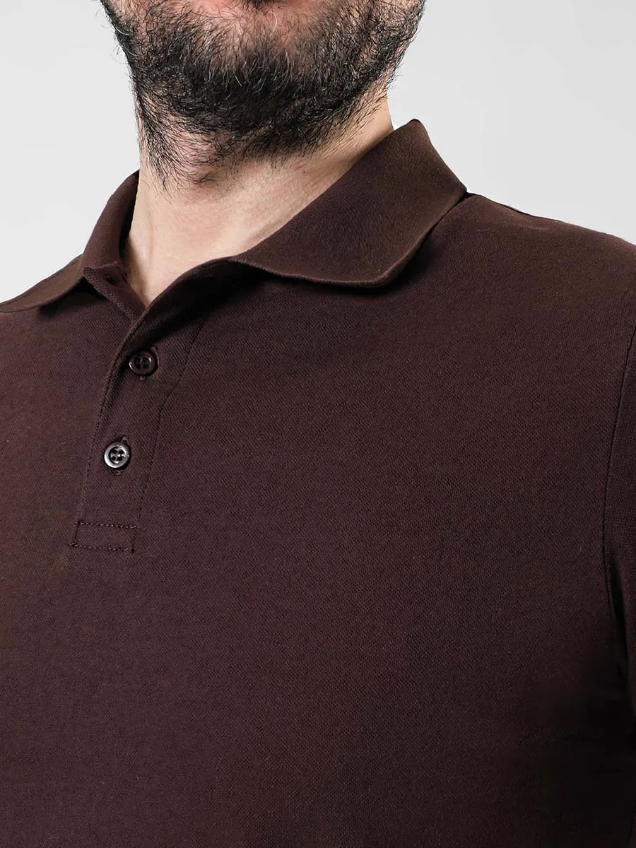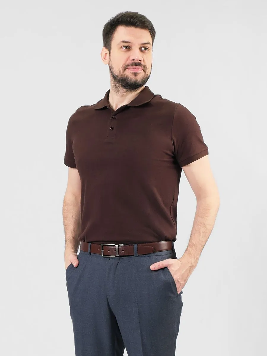 Классическая модель поло – это воплощение элегантности и комфорта в повседневном гардеробе. Отложной вязаный воротник придает изделию изысканный вид, а отрезная планка на пуговицах добавляет функциональности и позволяет регулировать степень открытости. Прямой силуэт поло не стесняет движения, обеспечивая максимальную свободу и удобство в любой ситуации.Коричневый цвет – это символ сдержанности и утонченного вкуса. Он легко сочетается с другими элементами гардероба, будь то классические брюки, джинсы или шорты. Коричневый цвет привносит ощущение тепла и уюта, делая образ более мягким и располагающим.