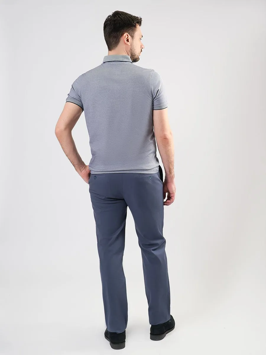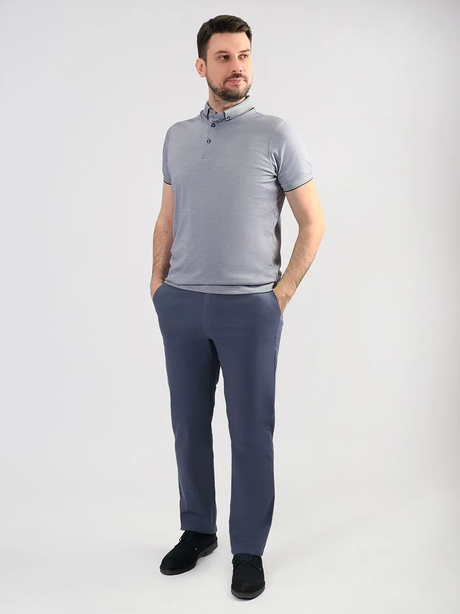 Мужское поло, сочетающее в себе классическую элегантность и современный комфорт, представляет собой идеальный выбор для мужчины, ценящего стиль и практичность. Модель выполнена с отложным воротником, искусно оформленным меланжевой вязкой, что придает изделию изысканный и ненавязчивый вид. Планка на пуговицах, аккуратно вписанная в общий дизайн, позволяет регулировать степень расстегнутости воротника, адаптируя образ под различные ситуации и предпочтения.Сочетание хлопка (55%) и полиэстера (45%) в составе ткани обеспечивает оптимальный баланс между комфортом и долговечностью.Цветовое решение поло выполнено в благородном синем цвете с меланжевым эффектом. Меланж, создавая игру оттенков, придает поло глубину и текстуру, делая его более интересным и выразительным. Синий цвет, ассоциирующийся со спокойствием и уверенностью, легко сочетается с другими элементами гардероба, позволяя создавать разнообразные и стильные образы.