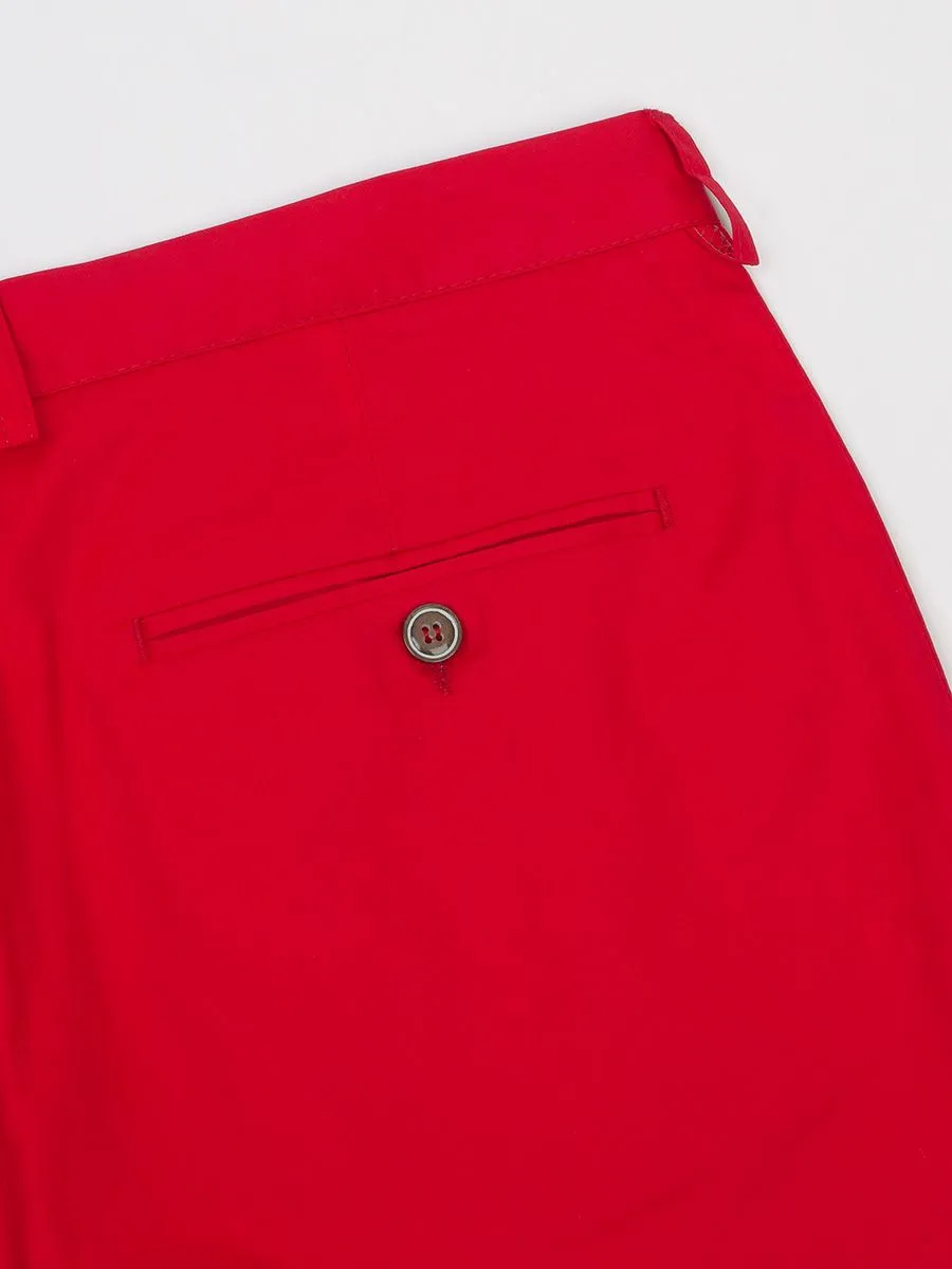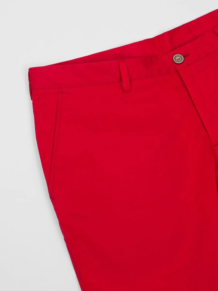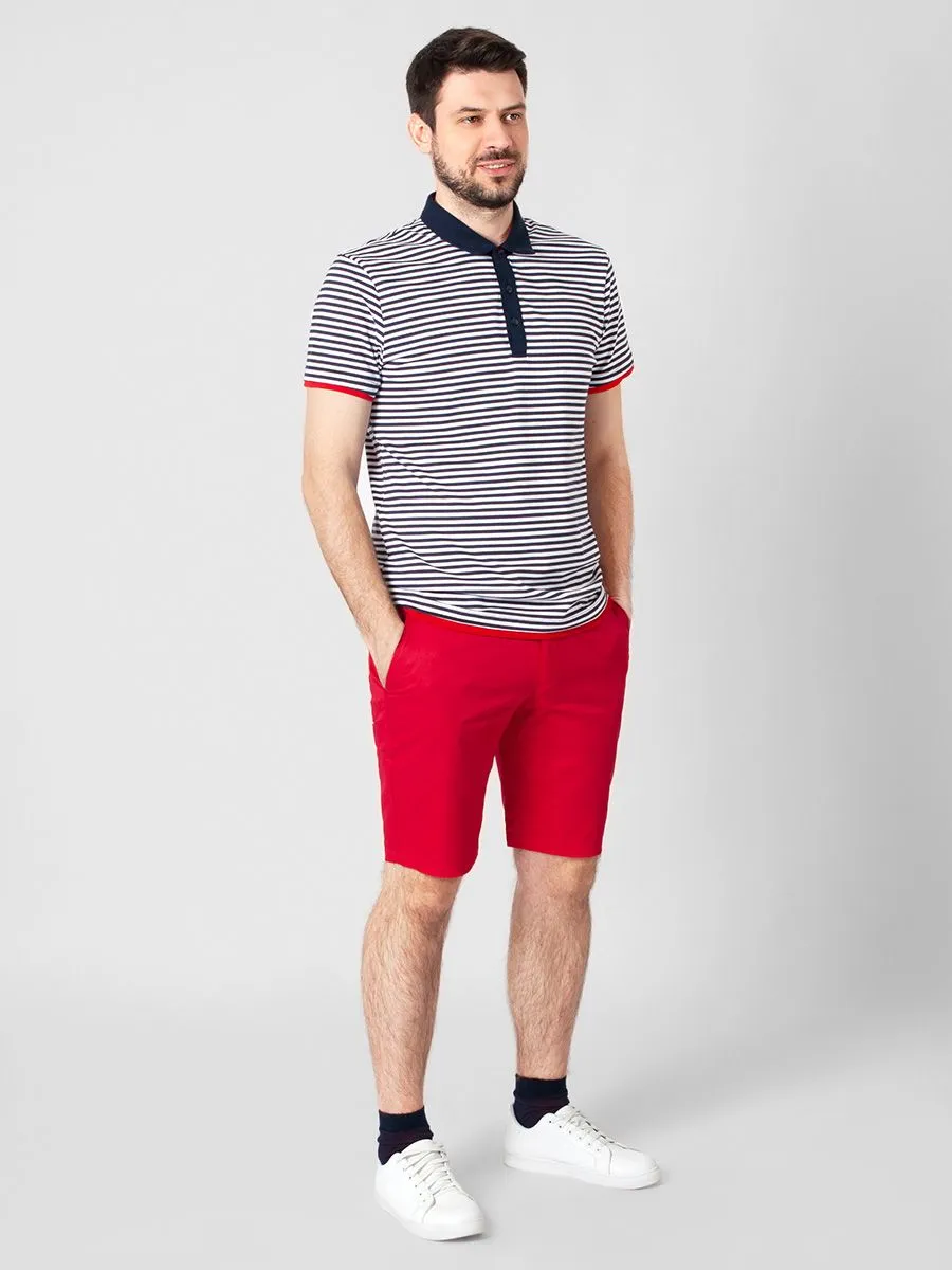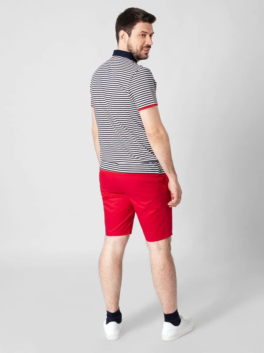 Красные хлопковые шорты будут ярким акцентом в вашем летнем гардеробе. У шорт стандартная удобная длина чуть выше колена, имеется два боковых кармана и два задних. Шорты отлично сочетаются со многими однотонными поло, футболками и рубашками. Но можно сделать смелый ход и надеть их вместе с полосатым поло TS21022-P или поло с лампасами TS21015-P.