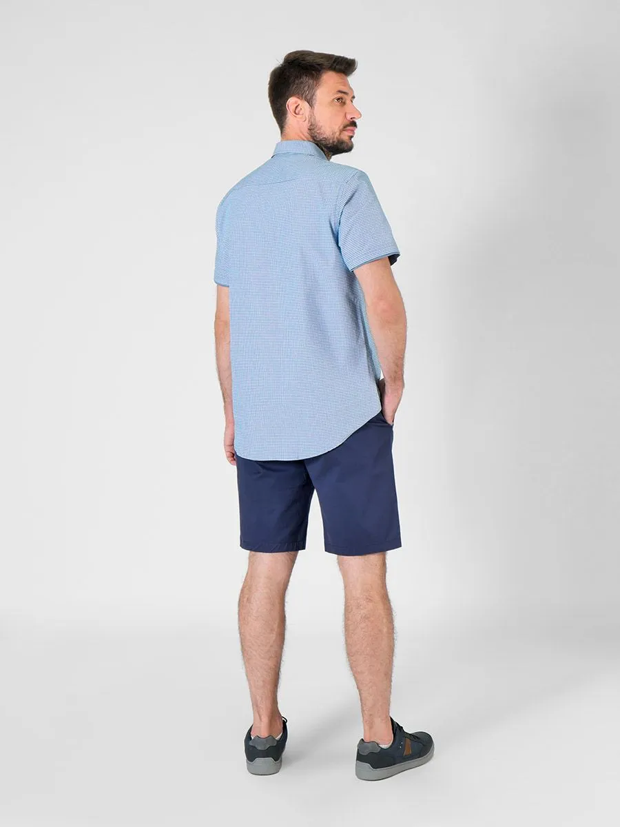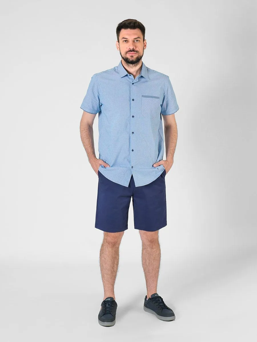 Мужские хлопковые шорты синего цвета - это классический вариант для летнего образа. К ним будет легко подобрать футболку или сорочку, они менее маркие, просты в уходе. У брюк есть красивая внутренняя отделка, благодаря чему становится понятно, что модель тщательно продумывали. Также есть два удобных боковых кармана, куда можно временно сложить нужные вещи.
