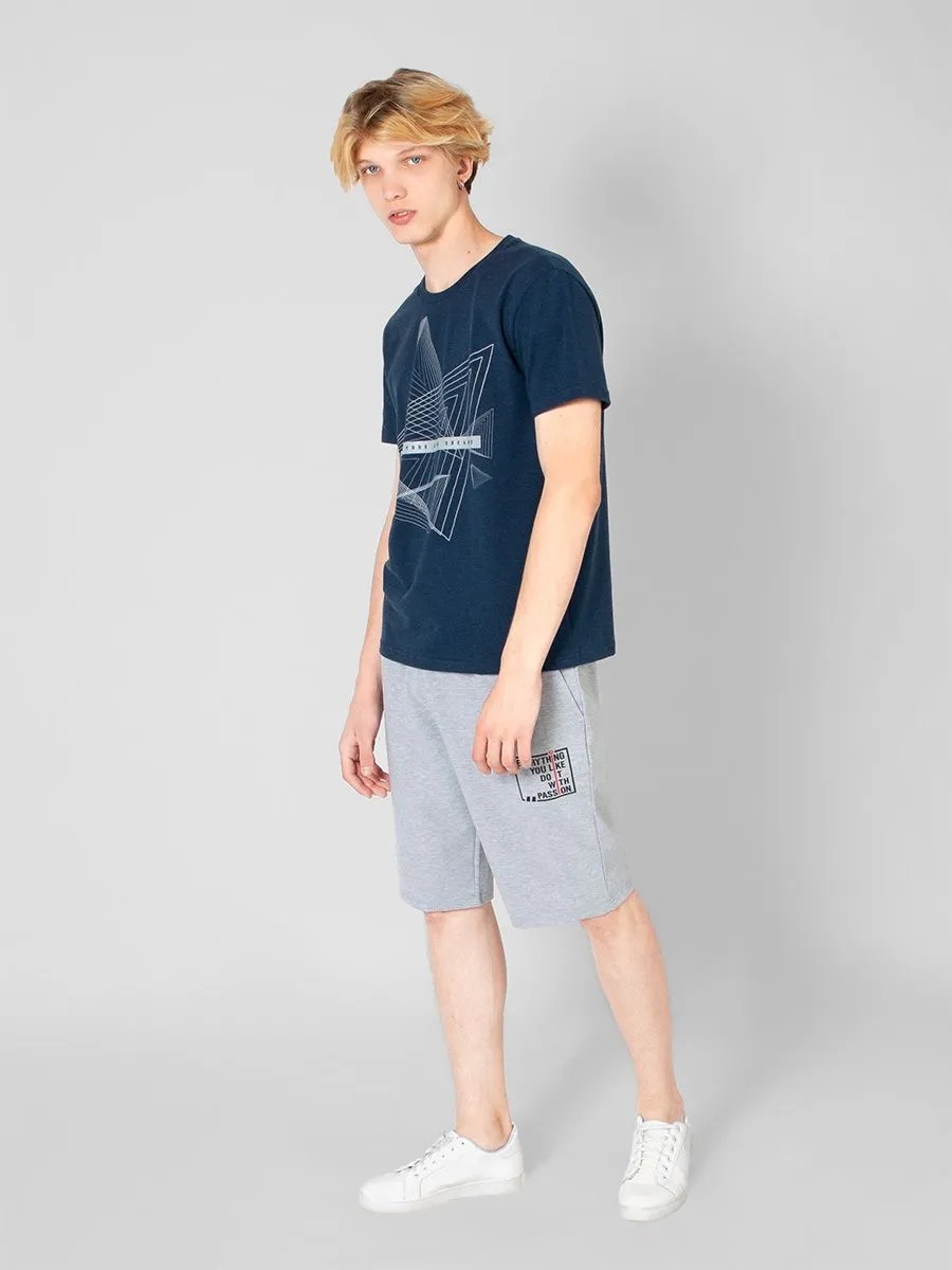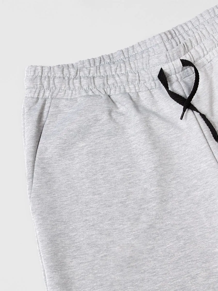 Трикотажные шорты свободного кроя от Peplos можно использовать для занятий спортом, прогулок, выездов на природу или просто носить дома. Шорты абсолютно не сковывают движения и приятны на ощупь. Они сделаны из серой хлопковой ткани, длиной чуть выше колена, а по бокам имеются карманы. На одной стороне есть надпись, в переводе означающая "Все, что тебе нравится делай со страстью".