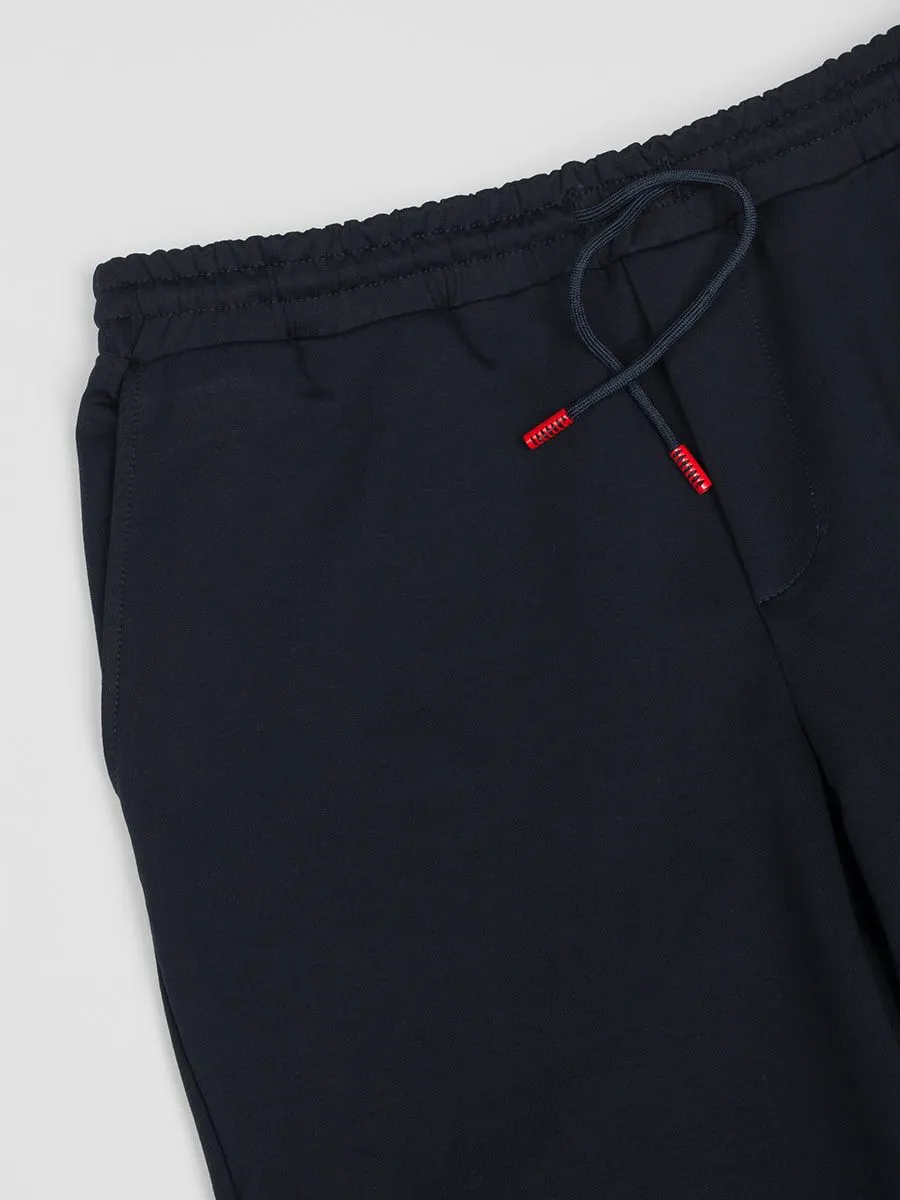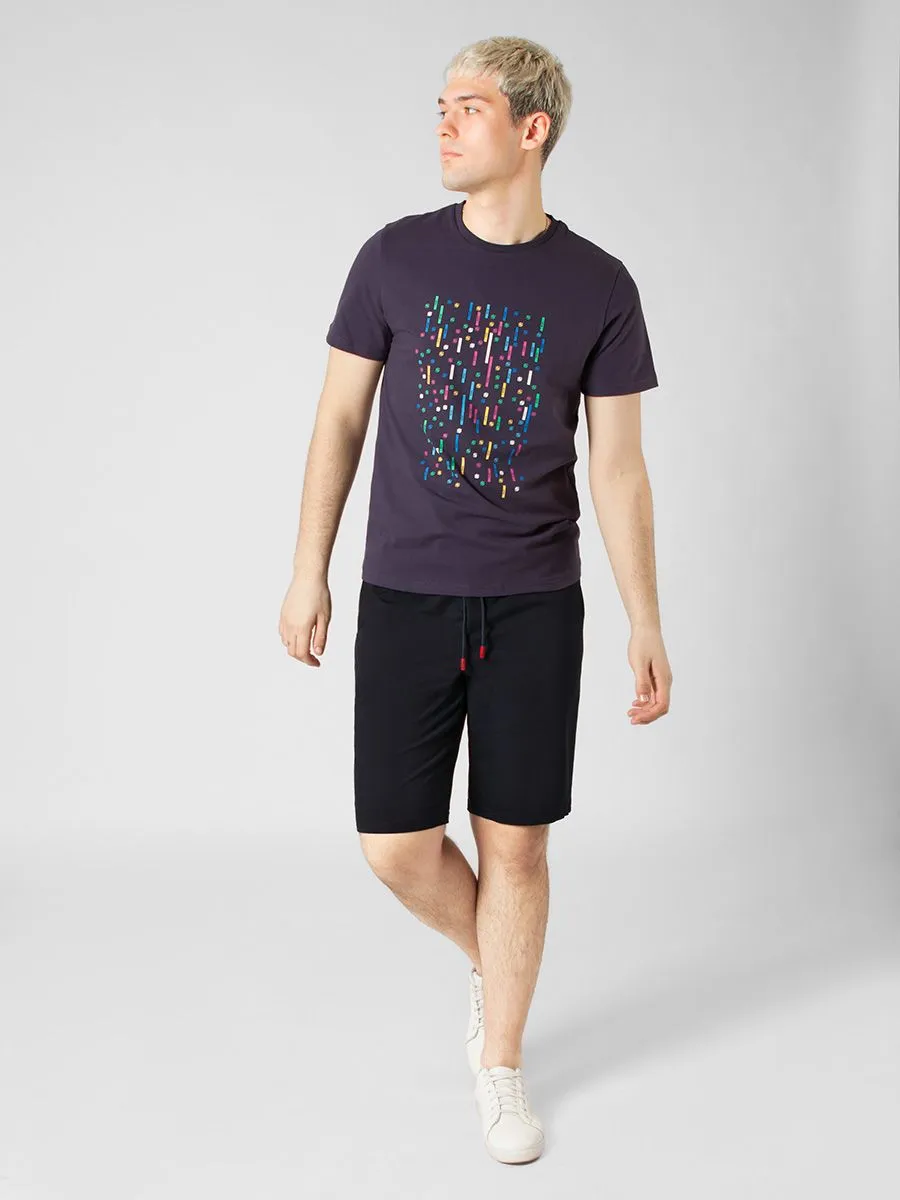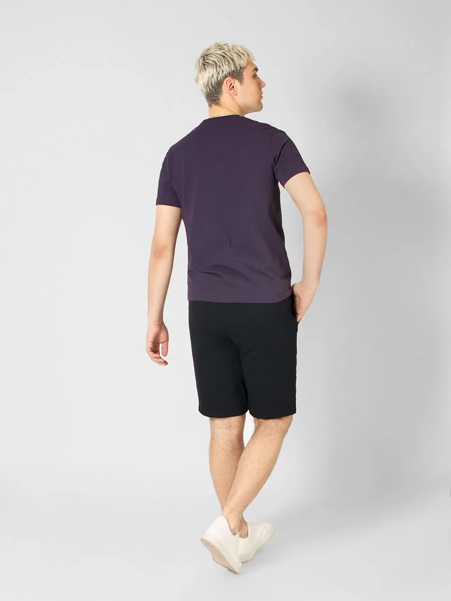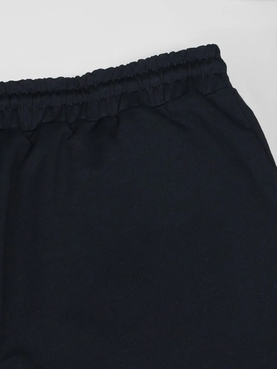Трикотажные шорты свободного кроя - хороший вариант для летнего отдыха или спорта. Темно-синий цвет близкий к черному практичен, универсален и не марок. Хлопковый состав с примесью полиэстера и лайкры обладает воздухопроницаемостью, износостойкостью и эластичностью. Поэтому в них комфортно находится на протяжении всего дня.